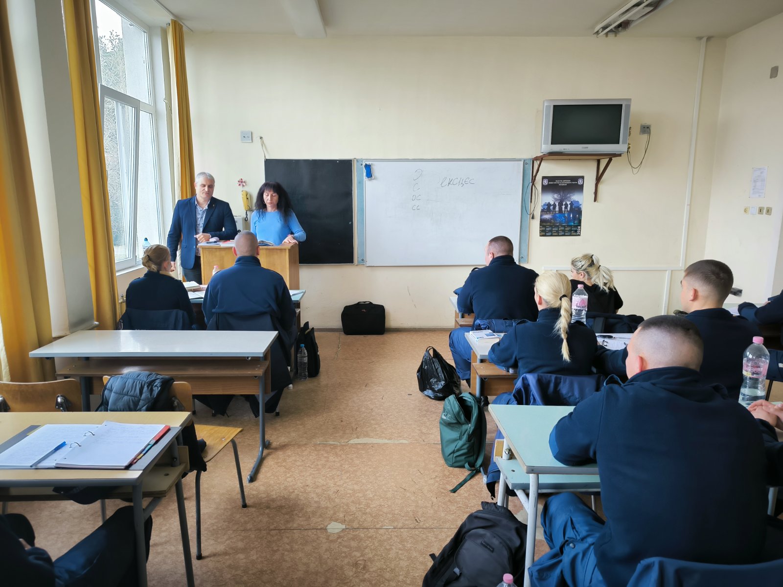 Прокурорите говориха по темата „Съучастие в извършването на умишлено престъпление“. По време на лекциите курсантите бяха запознати с наказателно-правната материя за съучастието като форма на престъпна дейност, неговите видове – извършител, подбудител и помагач, разликите с предварителен сговор, начина за определяне вида и размера на наказанията и др.