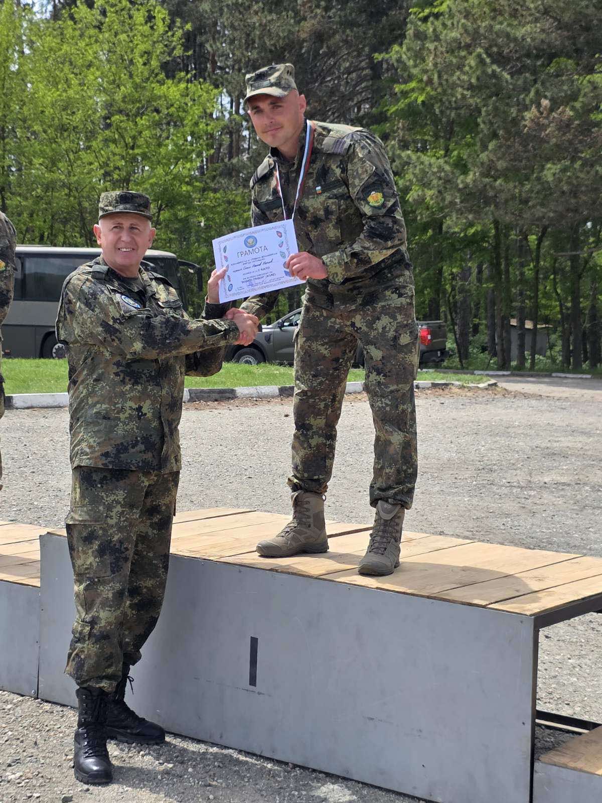 При мъжете на първо място е сержант Стоян Иванов от 2 механизиран батальон, на второ място редник Иван Ненов от зенитно-ракетен дивизион и на трето място е ефрейтор Мирослав Гърдев от 1 механизиран батальон.