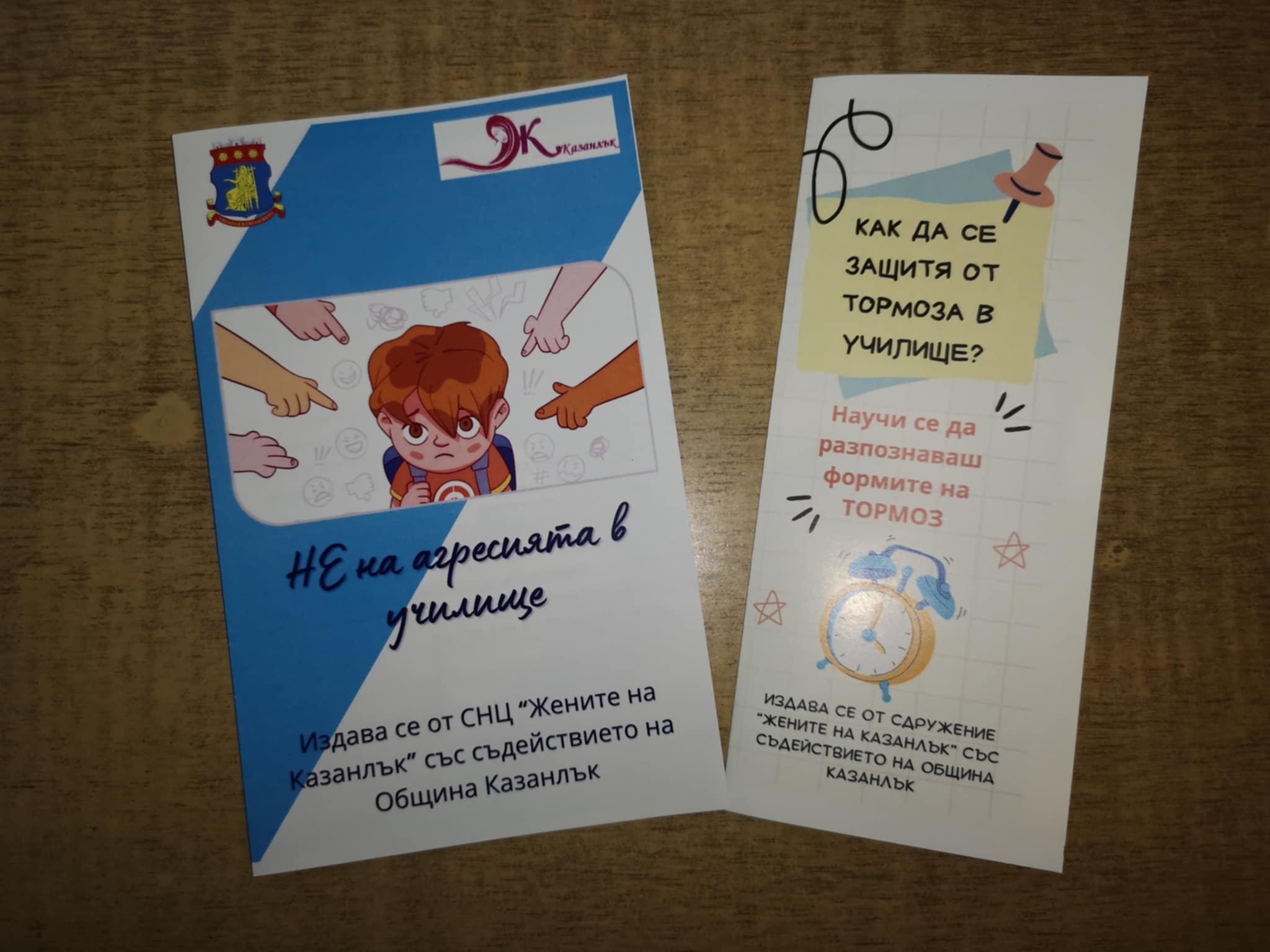 Училището получи материали, част от образователна и разяснителна кампания на сдружението, целяща повишаване информираността по проблемите, свързани с агресията сред учениците. Така всеки ученик ще научи какво означава тормоз в училище, как да разпознава неговите форми, как да се защити.
