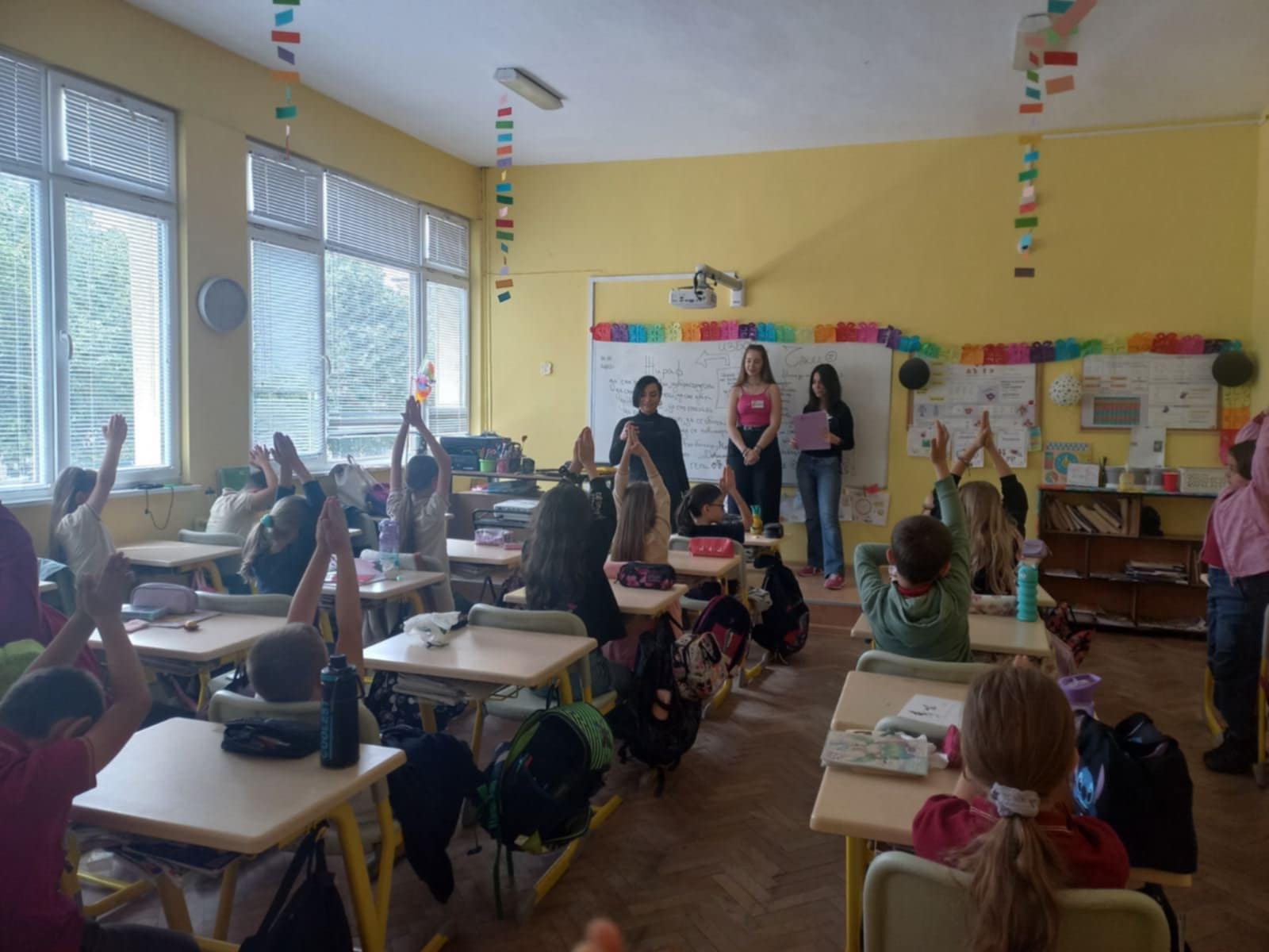 Обучителите бяха топло посрещнати от учениците от 2.а, 2.б и 2.в. клас и техните учители. По предварително изготвена програма, съобразена с възрастта на децата, се обсъдиха теми като ненасилствена комуникация, език на жирафа, език на чакала, справяне с конфликти без агресия. Не бяха пропуснати така любимите ролеви и ситуационни игри, както и вълшебните приказки с поука.