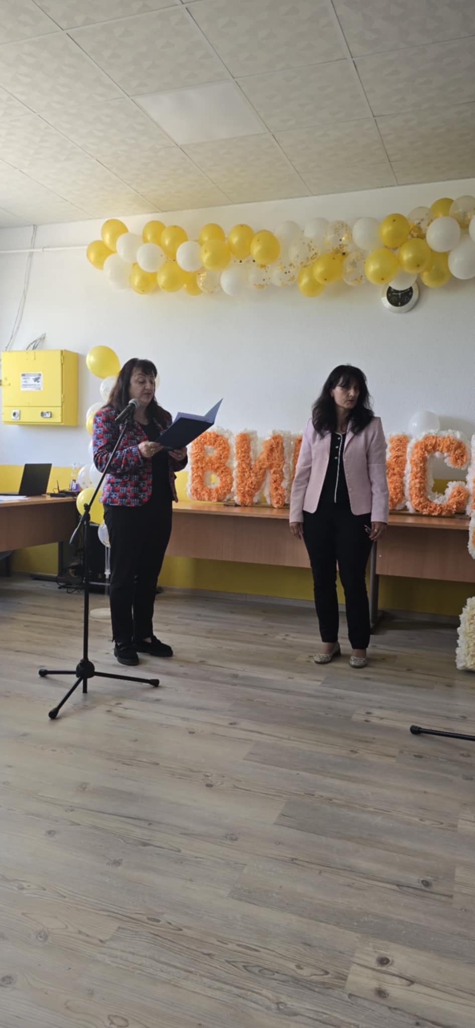 Абитуриентите бяха поздравени от името на кмета Иса Бесоолу, който им пожела да бъдат добри и отговорни хора, да вярват в себе си и да бъдат себе си:„Днес заставате пред нас устремени в утрешния ден, с полет към непознатото, но и уверени в силите и възможностите си. Нека този устрем и тази вяра живеят винаги във Вас! Нека, вървейки по пътя на зрелостта, самостоятелността и отговорността, поривът за покоряване на нови хоризонти не Ви напуска никога. Следвайте мечтите си! Помнете безценните уроци, които не са написани в учебниците, но Вие добре сте научили в годините до сега!“