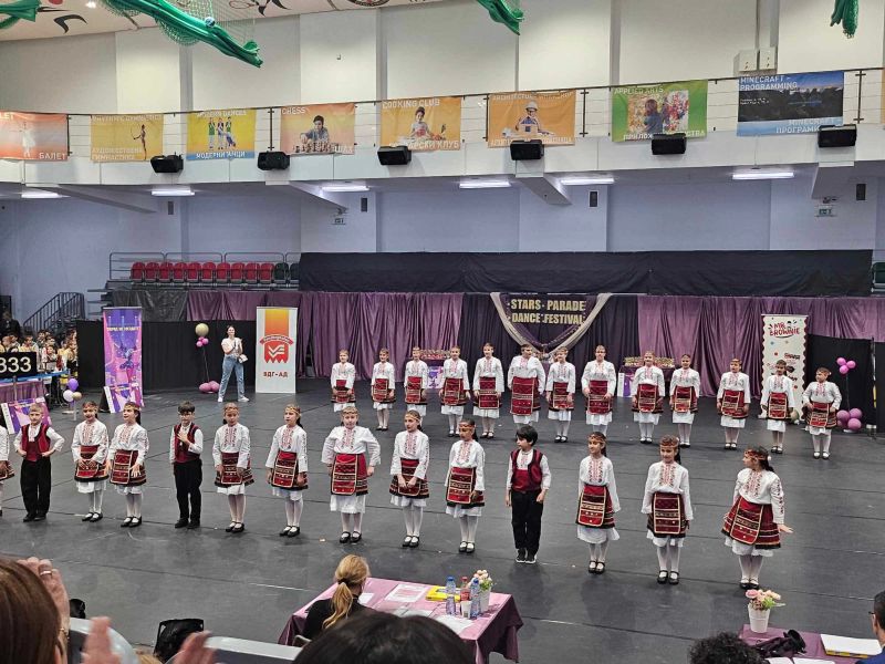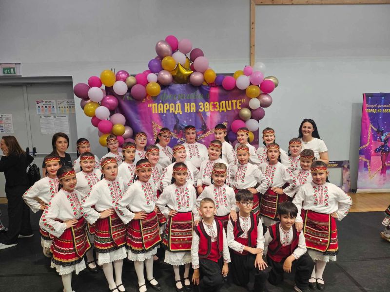Децата грабнаха публика и жури с изпълненията си на танците "Веселата ръченица" и "Северняшки танц" и спечелиха златна и сребърна звезда. Успешното представяне на конкурсната програма е и благодарение на техните помощник ръководители Гергана Георгиева и Ивелина Алексиева, както и корепетитора Минчо Минчев.