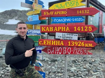 Изпълнявайки служебните си задължения, успя да си "открадне" време и да закачи табела с името на с. Енина на ледения о-в Ливингстън.