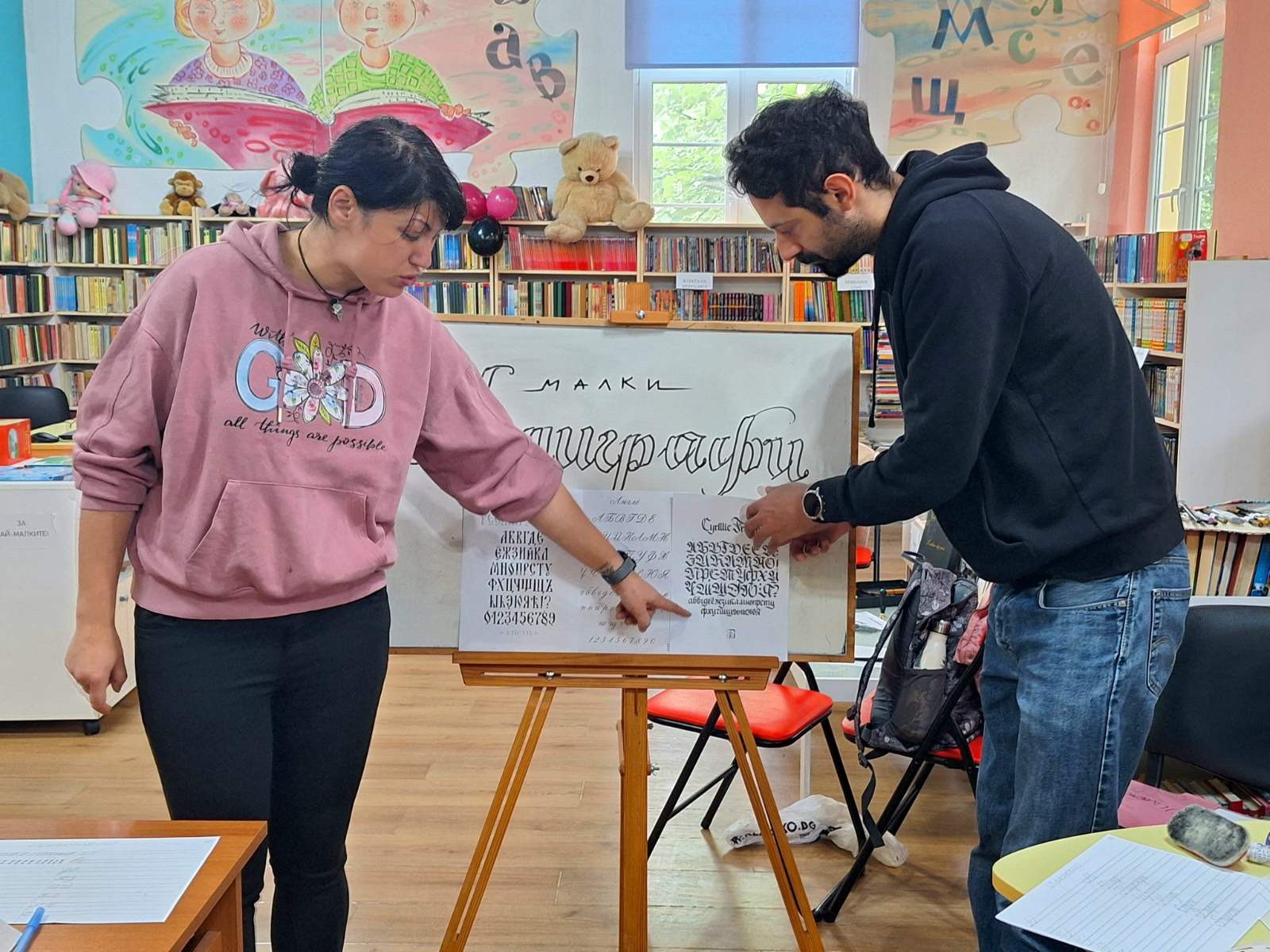 Второкласниците взеха участие в творческо ателие "Калиграфски уъркшоп" с калиграфите Полина и Петър Караилиеви. Събитието се проведе в Детски отдел на Общинска библиотека "Искра", където се запознаха с някои от основните понятия от калиграфията, опитаха на практика писане с мастило и писалка, разгледаха и се докоснаха до калиграфски комплекти с восъчни печати и писалки.