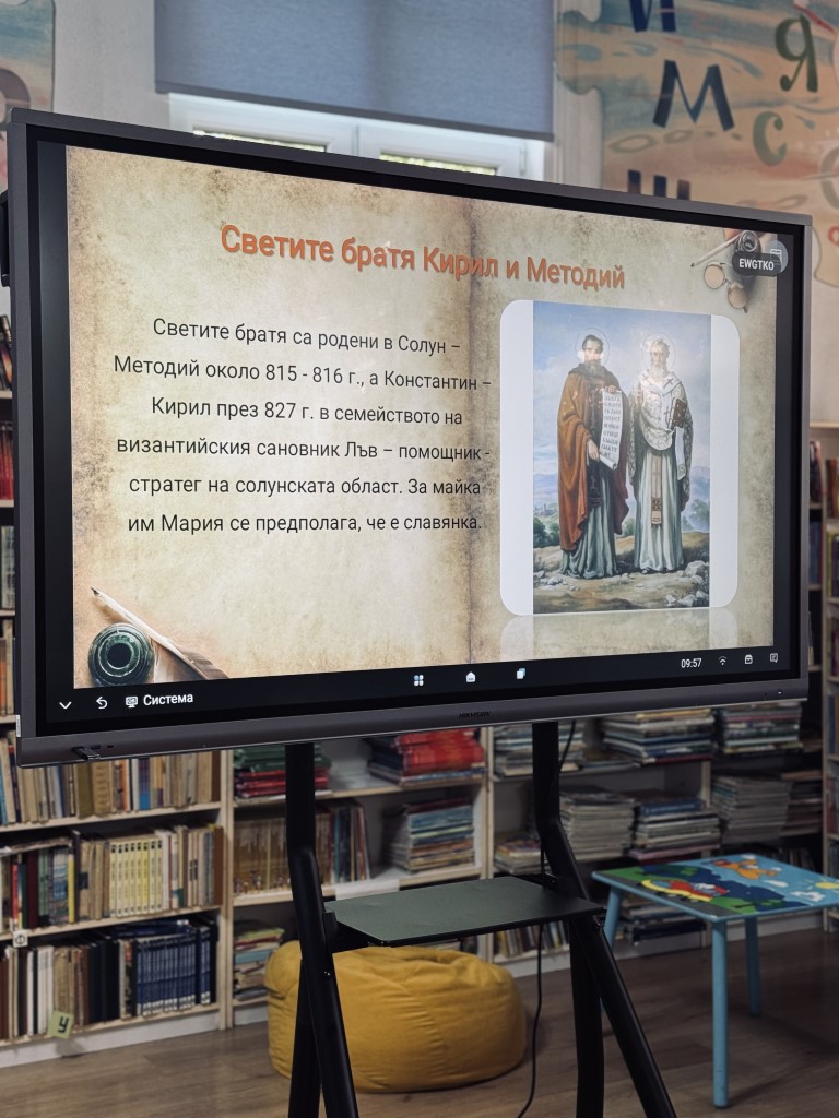 Децата от трети „а“ клас с г-жа Христова и г-жа Огнянова и трети „г“ клас с г-жа Ясенова и г-жа Душанова от ОУ „Никола Вапцаров“ посетиха местната библиотека, където ги очакваше образователна и вдъхновяваща среща с историята. По повод наближаващия 24 май – Деня на светите братя Кирил и Методий, учениците изгледаха специална презентация, посветена на създателите на славянската писменост.