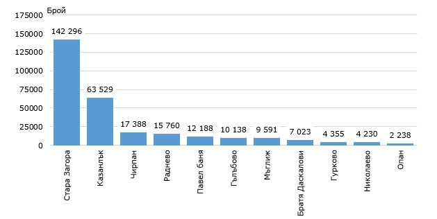 Население към 31.12.2024 г. по общини в област Стара Загора