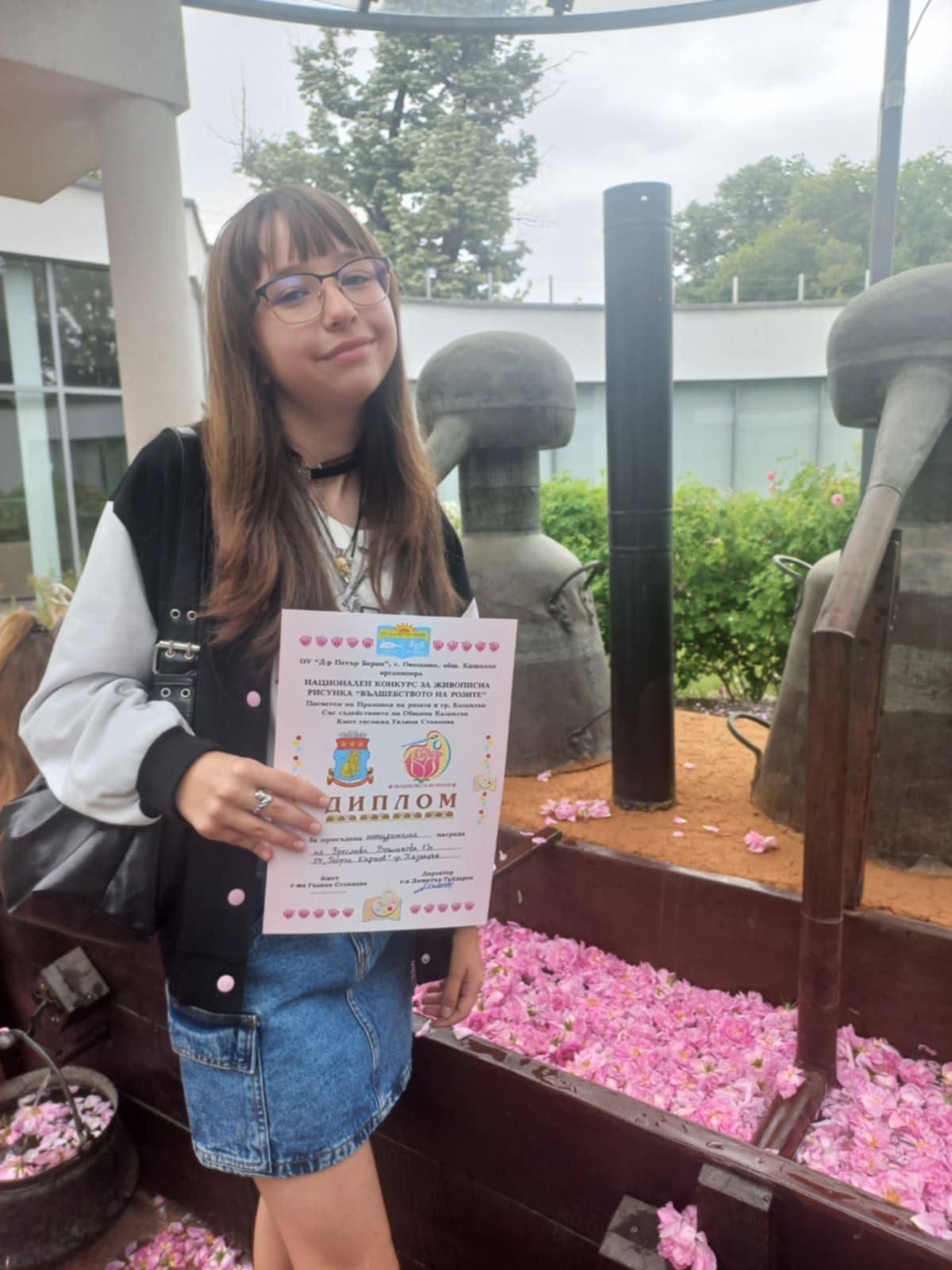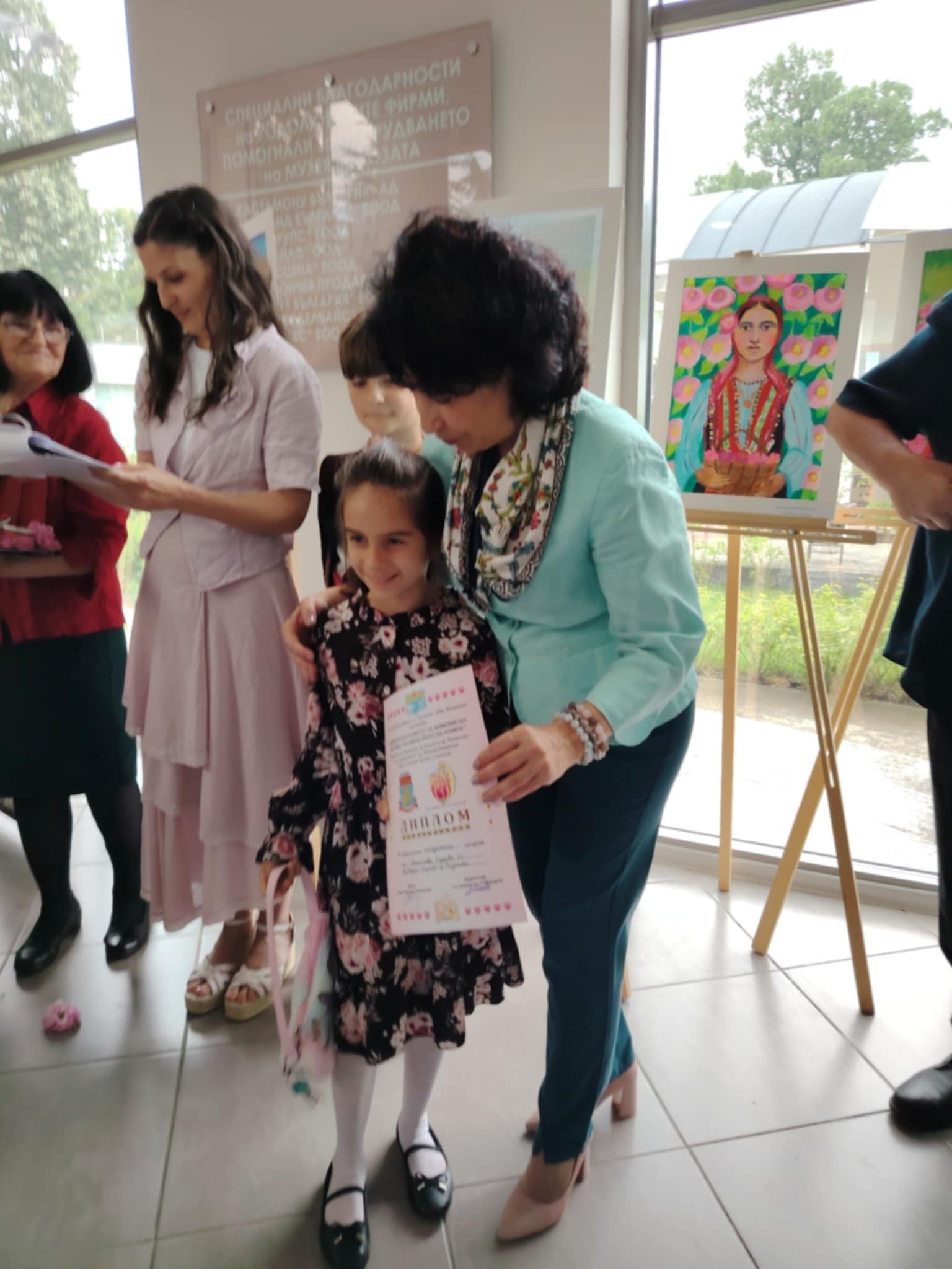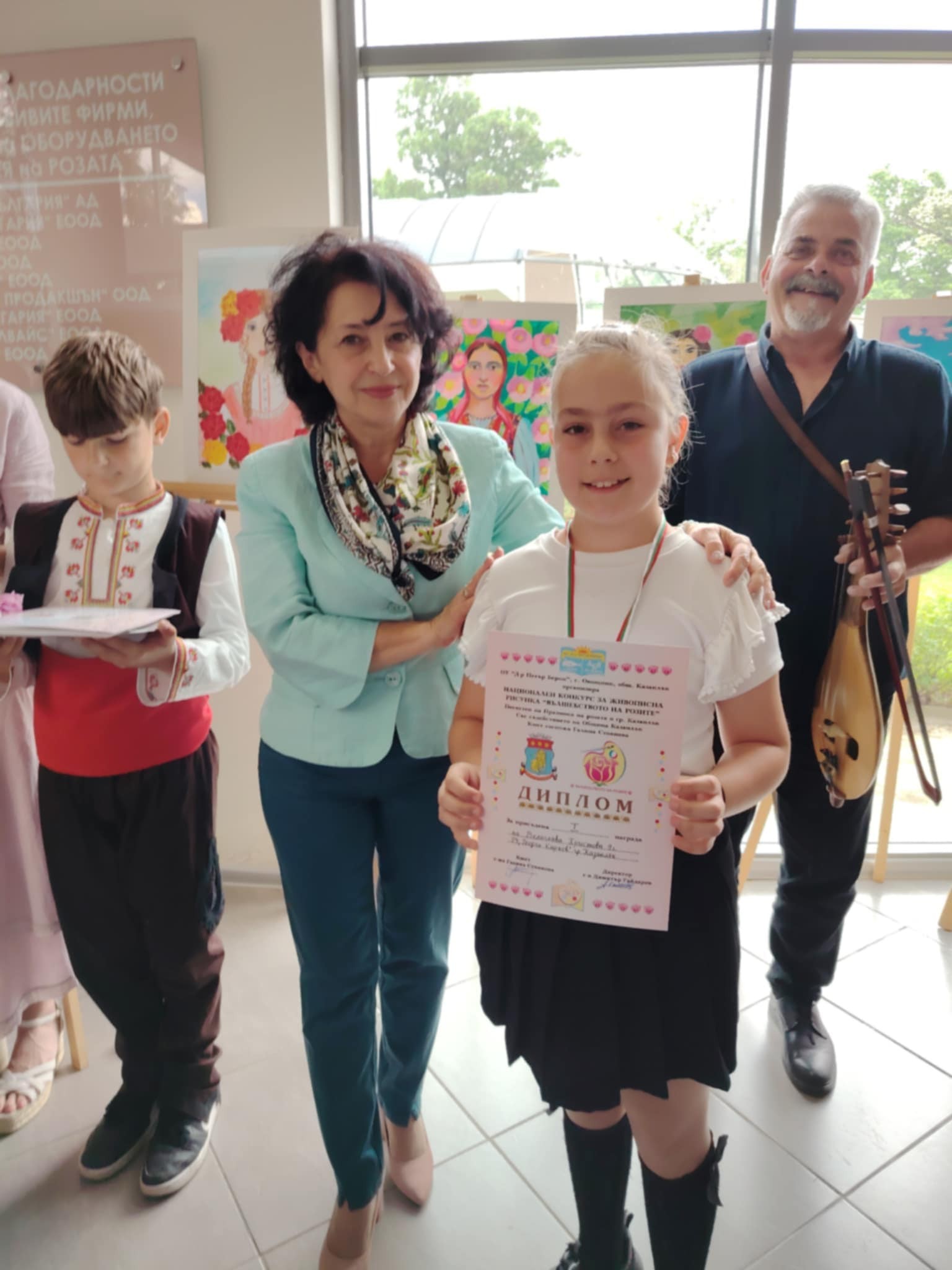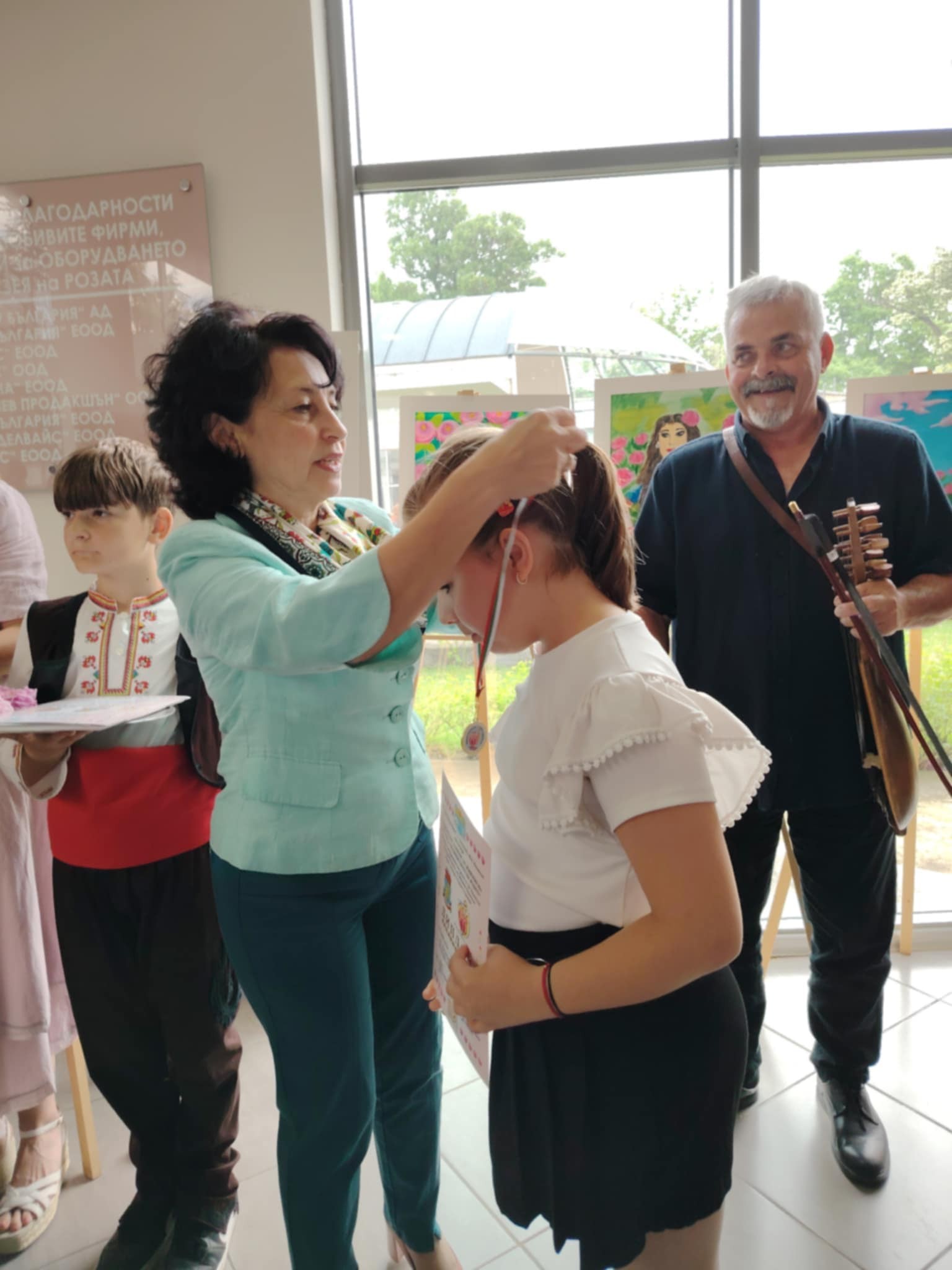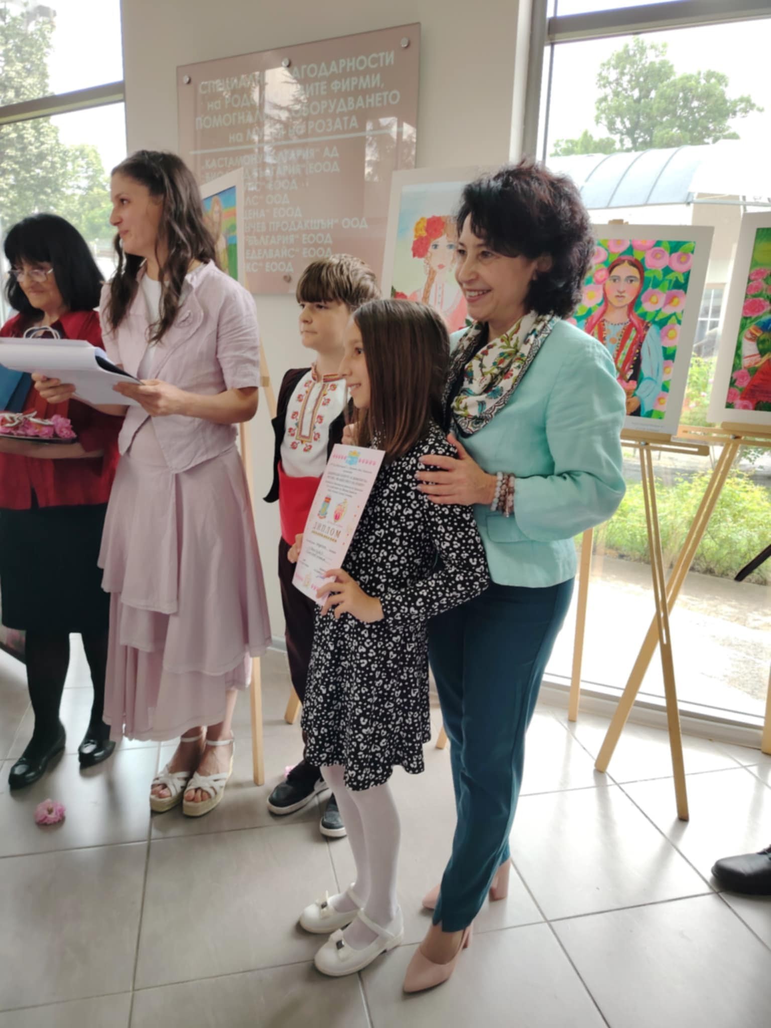Наградите бяха официално връчени от г-жа Аксения Тилева- заместник - кмет на Община Казанлък. За активното участие на ученици във всяка възрастова група на конкурса, ОУ "Георги Кирков" получи Диплом за присъдена групова награда. Наградените ученици участваха с повече от една картина в конкурса, които след излагането им в Музея на розата, ще вземат участие в изложба в столицата на Южна Корея-гр.Сеул, посочиха от учебното заведение.