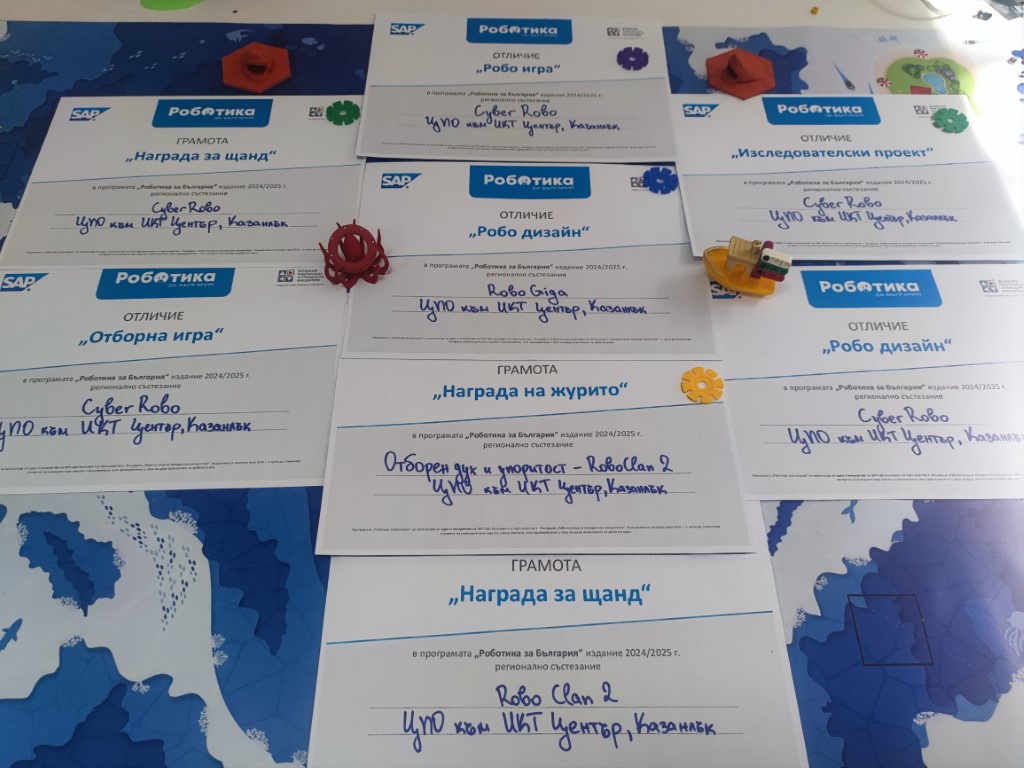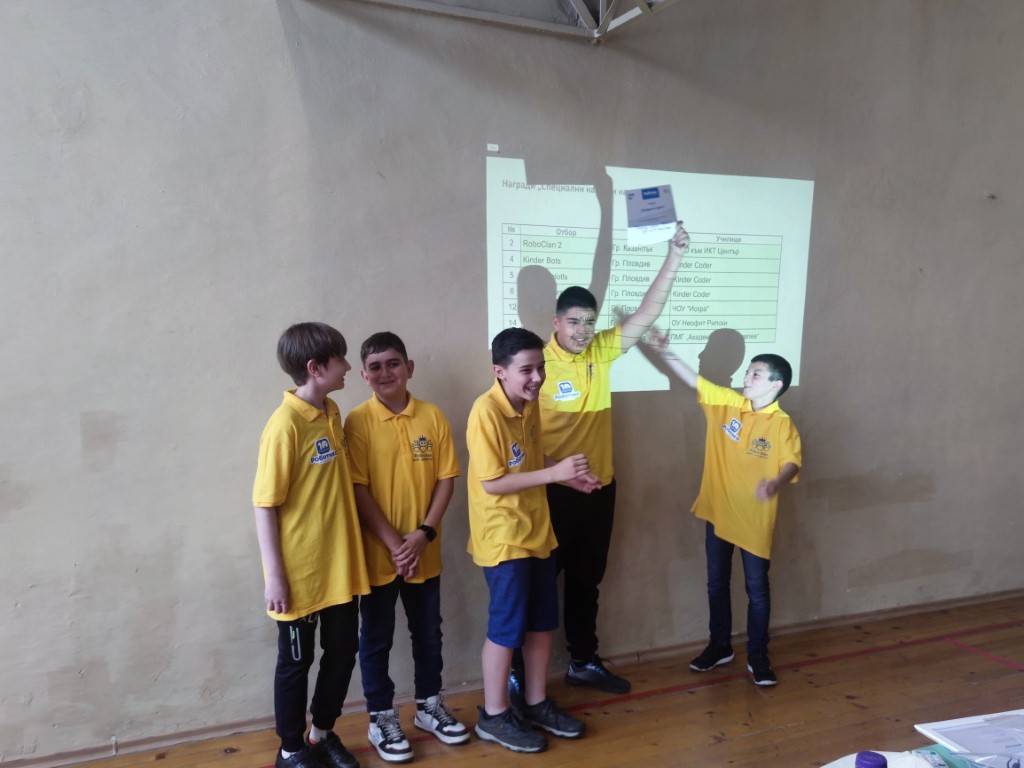 Дебютът като отбор за RoboClan2 също ощастливи децата, след като малко ги разплака при упралението на роботите. Антон, Ангел и тримата Мартиновци показаха упоритост, дух и характер на състезатели и заслужено им беше връчена „Награда на журито“ и Грамота за „Най-добър щанд“!