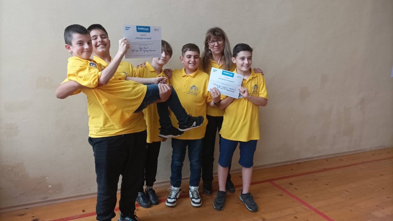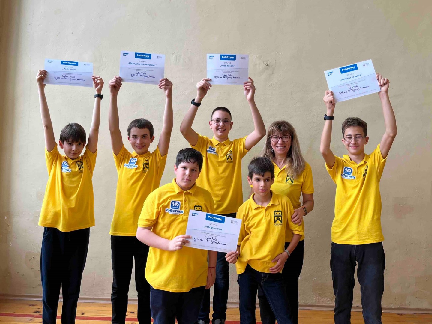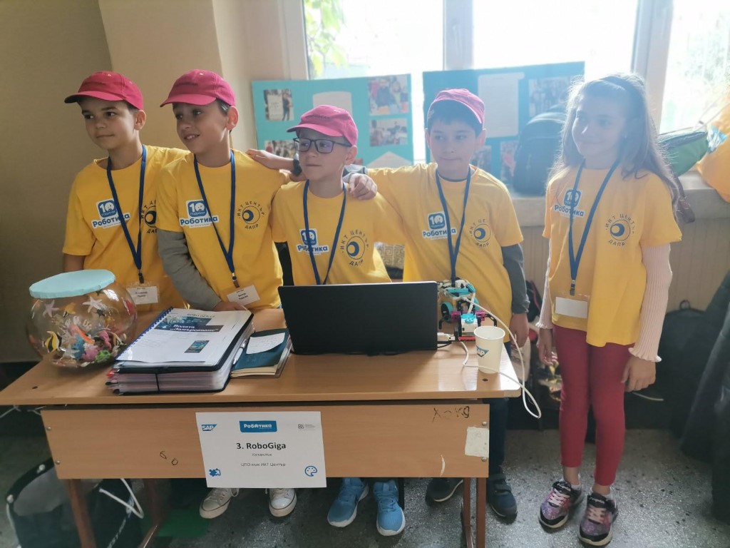 Отборът „RoboGiga”, който миналата година вдигна Златната купа на Финала на „Роботика за България“ също премина през всички емоции на състезанието. Елена, Владимир, Виктор, Мартин, Калоян и Кристиян, който дойде екстремно от друго състезание, получиха награда за „Робо дизайн“! Това са и най-малките ни участици, в 2-и до 4-и клас, които се изправиха срещу по-големите, даже и гимназисти!