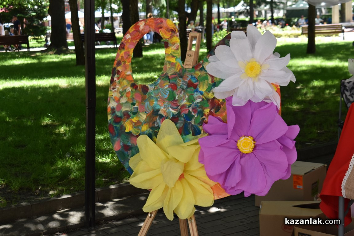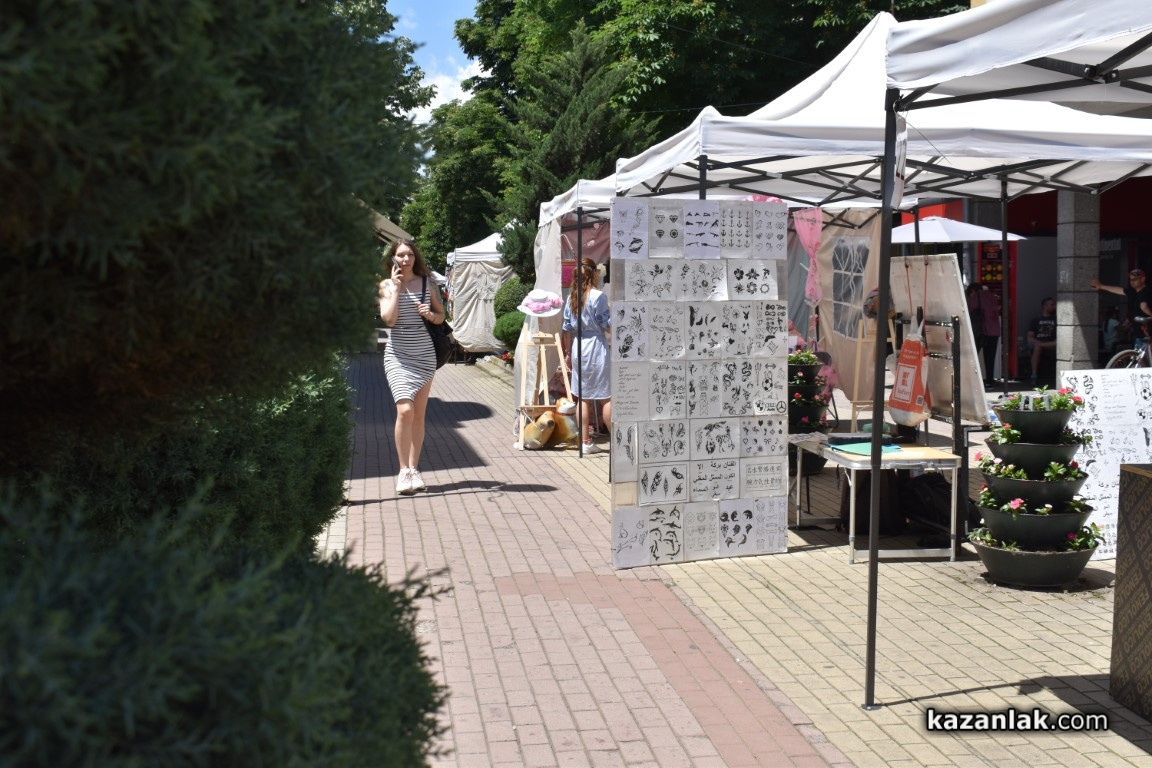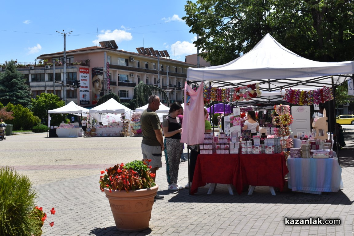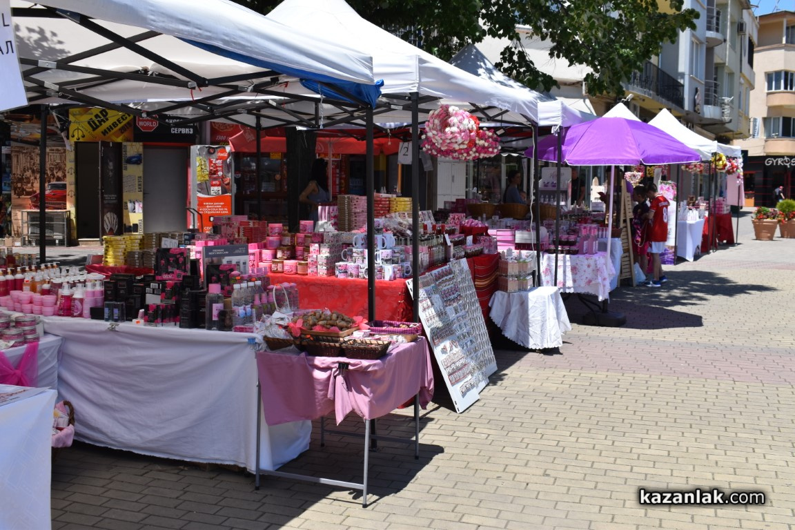 Първите щандове посрещат казанлъчани и гости с богато разнообразие от розови продукти, бижута, сувенири, дамски аксесоари и ръчно изработени дървени изделия.