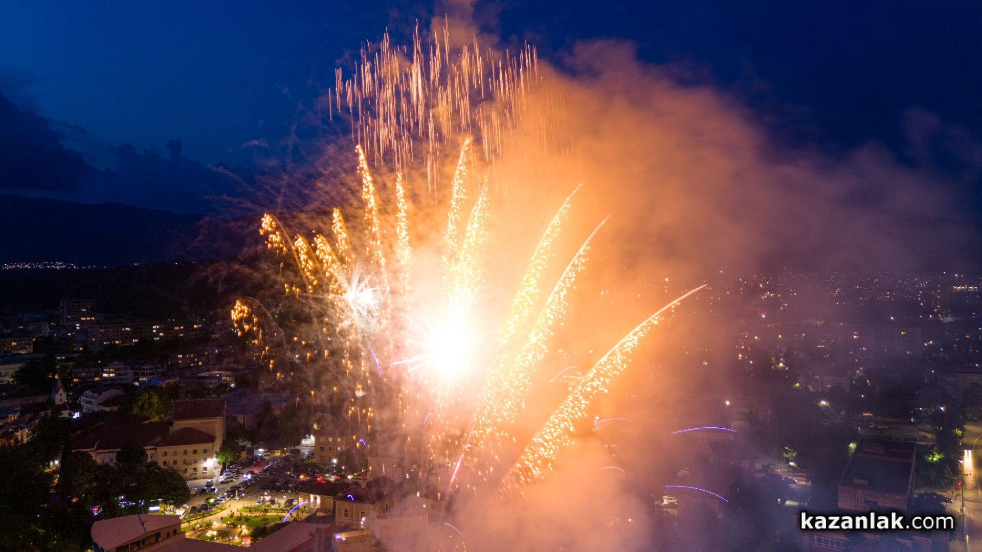 За завършек на спектакъла, пищна заря обагри небето над градския площад в чест на новата Царица роза, избрана на 15 май на тържествен конкурс в съревнование с още 32 красиви абитуриентки от Града на розите.