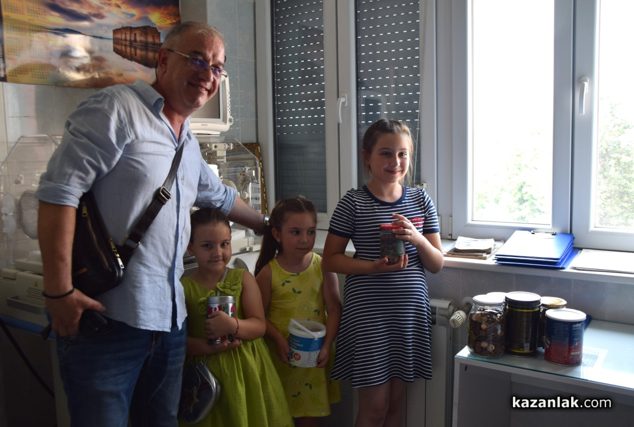 Символичното дарение беше направено от децата от 17-та детска градина “Славейче” в Казанлък, които връчиха апаратурата и 10 буркана, пълни с жълти стотинки. Всички те са родени именно в болницата, която сега подкрепят – затрогващ жест на признателност и съпричастност.