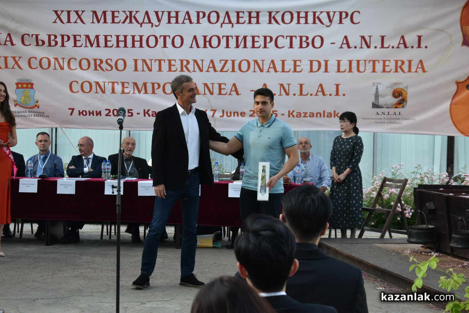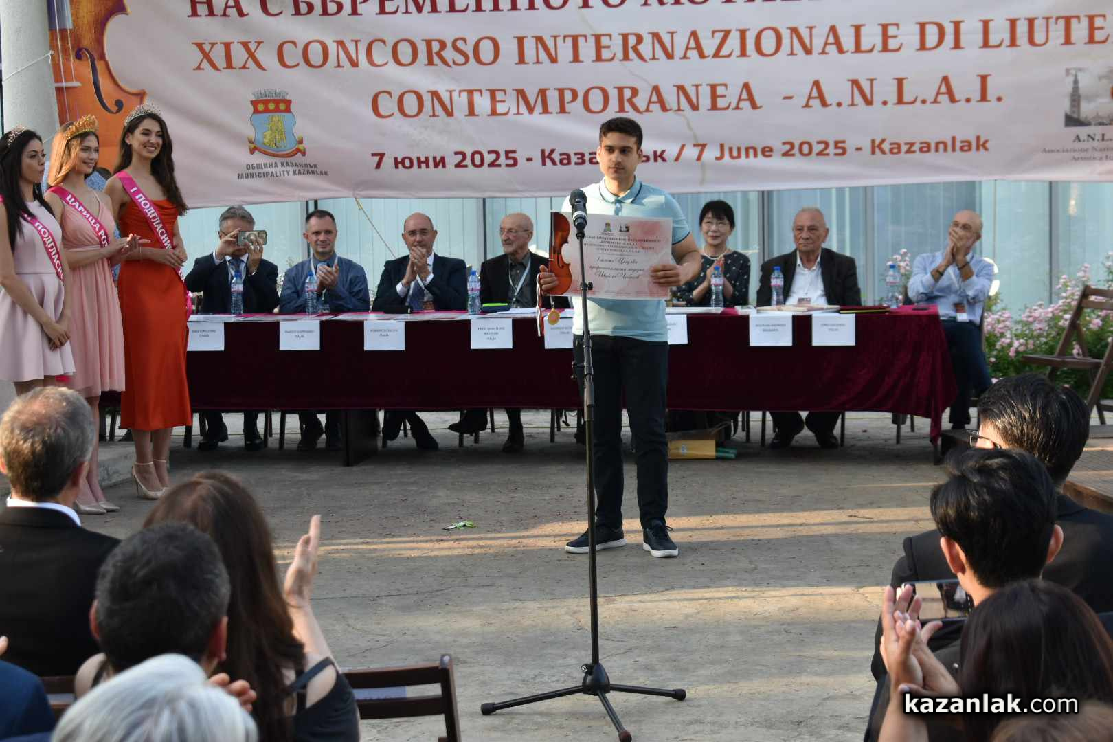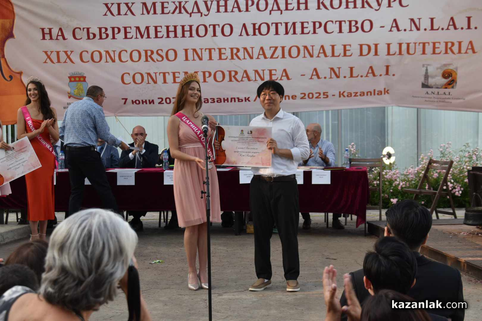 Официалната церемония по награждаването на участниците в ХІХ-ти международен конкурс за съвременно лютиерство бе кулминационният момент на Международния лютиерски фестивал, провеждащ се в рамките на Празник на розата 2025.