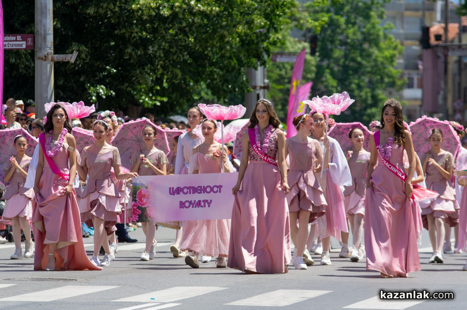 Казанлъчани показаха на своите гости живите си традиции, различни моменти от историята и многоликата култура на Розовата долина. Шествието на аромата и красотата бе поведено от най-красивата абитуриентка за 2025г. в Казанлък Царица роза Мария Шамбурова и нейните подгласнички - Константина Костадинова и Таня Чипилска. Царската свита беше придружена от красивите принцеси - балерините от Балетна школа „Па Де Кре“. Малките принцеси на Розата от детските градини на Долината, също дефилиращи в грандиозния парад, озариха централни улици с чиста и непринудена обаятелност.
