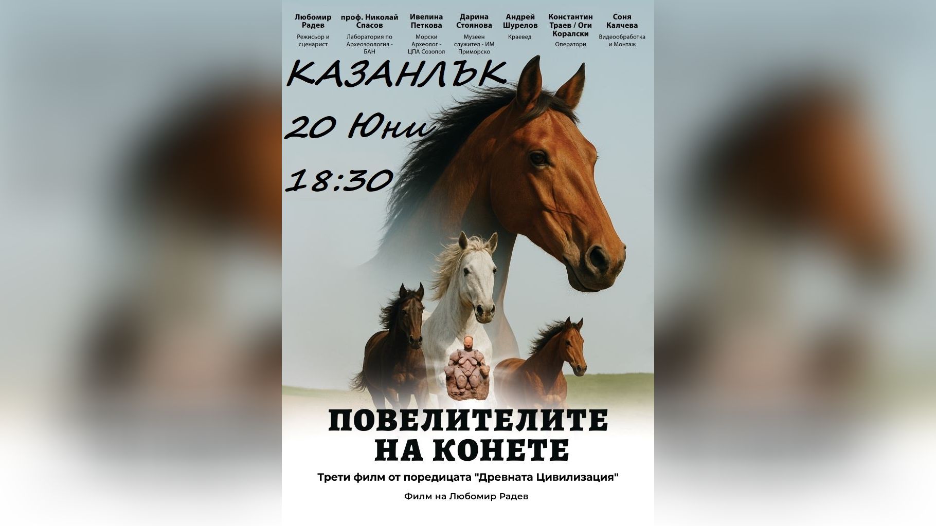 Новата лента носи заглавието „Повелителите на конете“, дело на Любомир Радев - историк, траколог и изследовател. Филмът е посветен на символиката и значението на коня в културата на древните народи.