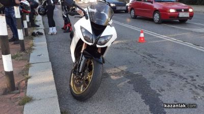 Мотоциклетът, управляван от 42-годишен мъж, се блъснал в движещия се пред него "Ситроен", управляван от 32-годишен водач. При инцидента мотористът е получил наранявания на лявата ръка. Пострадалият е транспортиран от екип на ФСМП – Казанлък за преглед и лечение в УМБАЛ – Стара Загора, без опасност за живота. И двамата водачи са тествани за употреба на алкохол с техническо средство, като пробите са отрицателни. По случая в РУ – Казанлък е образувано досъдебно производство по чл. 343, ал. 1, от Наказателния кодекс.