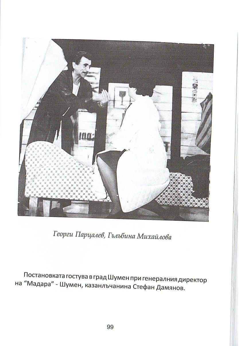 Нашата съгражданка Гълъбина Михайлова, художествен ръководител на Сатиричния театър в гр. Казанлък споделя в своята книга „60 години Казанлъшка сатира”, че представлението „Енергични хора” от Василий Шукшин е играно 41 пъти, от които 20 пъти с гастрол на Георги Парцалев. Гост – режисьор е бил Борис Спиров от Държавния сатиричен театър.