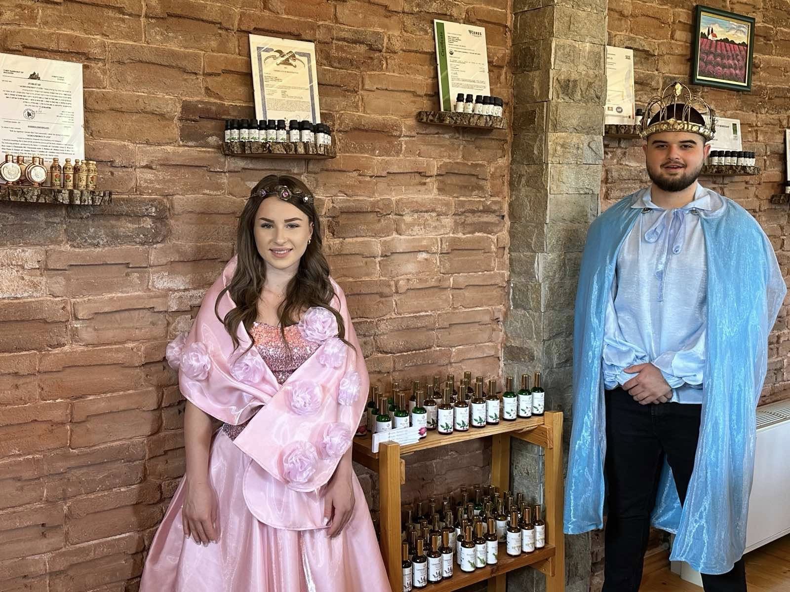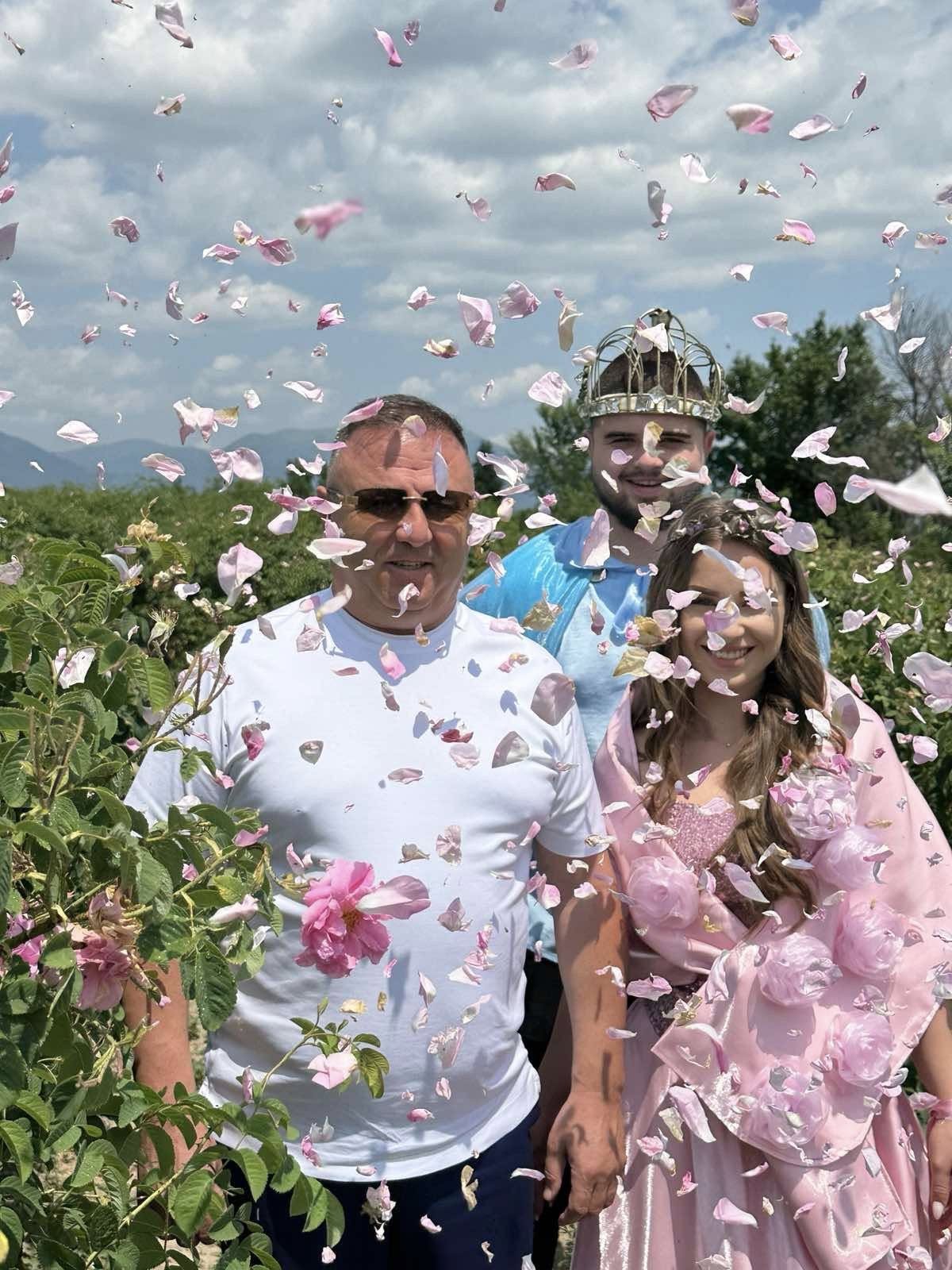 царска корона, кметът Иса Бесоолу заведе Нейно Величество и Царя на минералната вода Христо Мудрев в една от павелбанските розоварни.