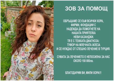 Неви Казанджи, 32-годишна жена от град Павел баня, за съжаление вече е изправена пред една от най-трудните битки в живота си – тумор на млечната железа.