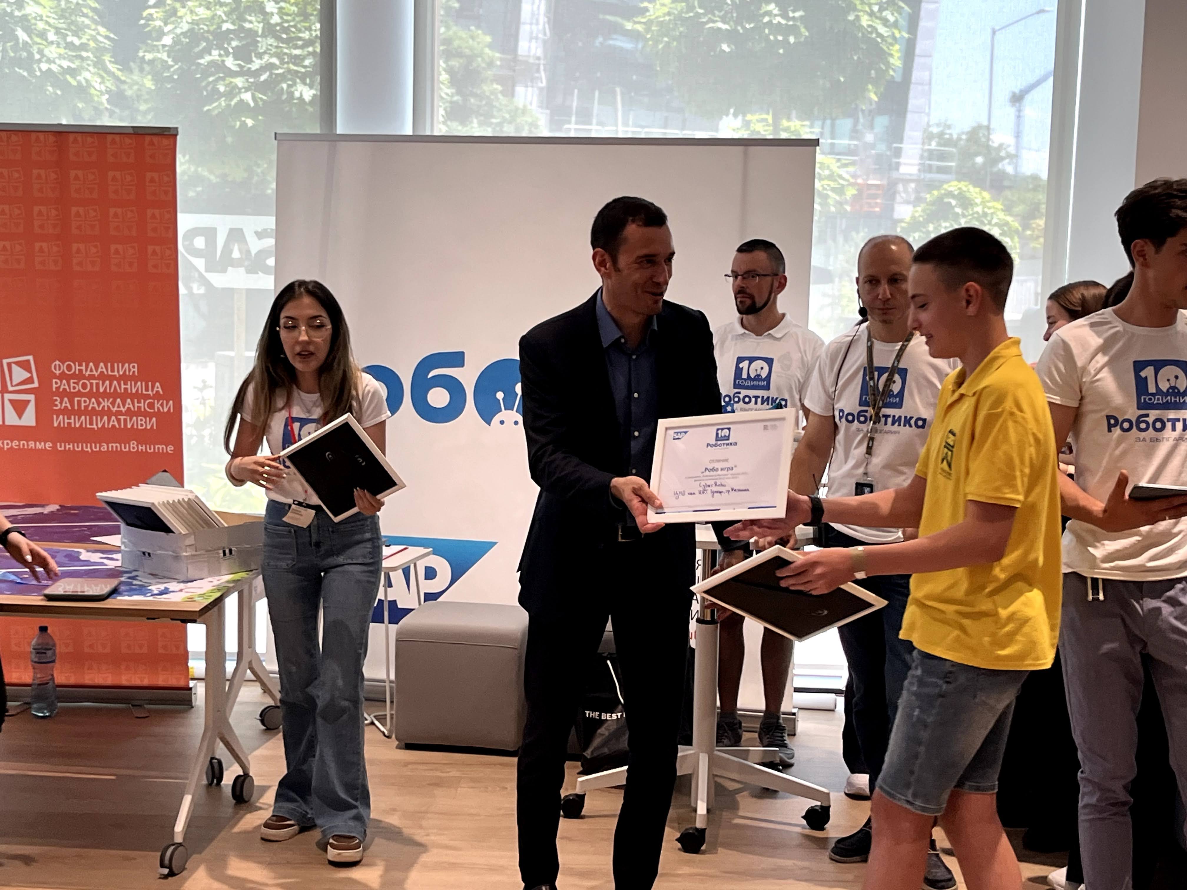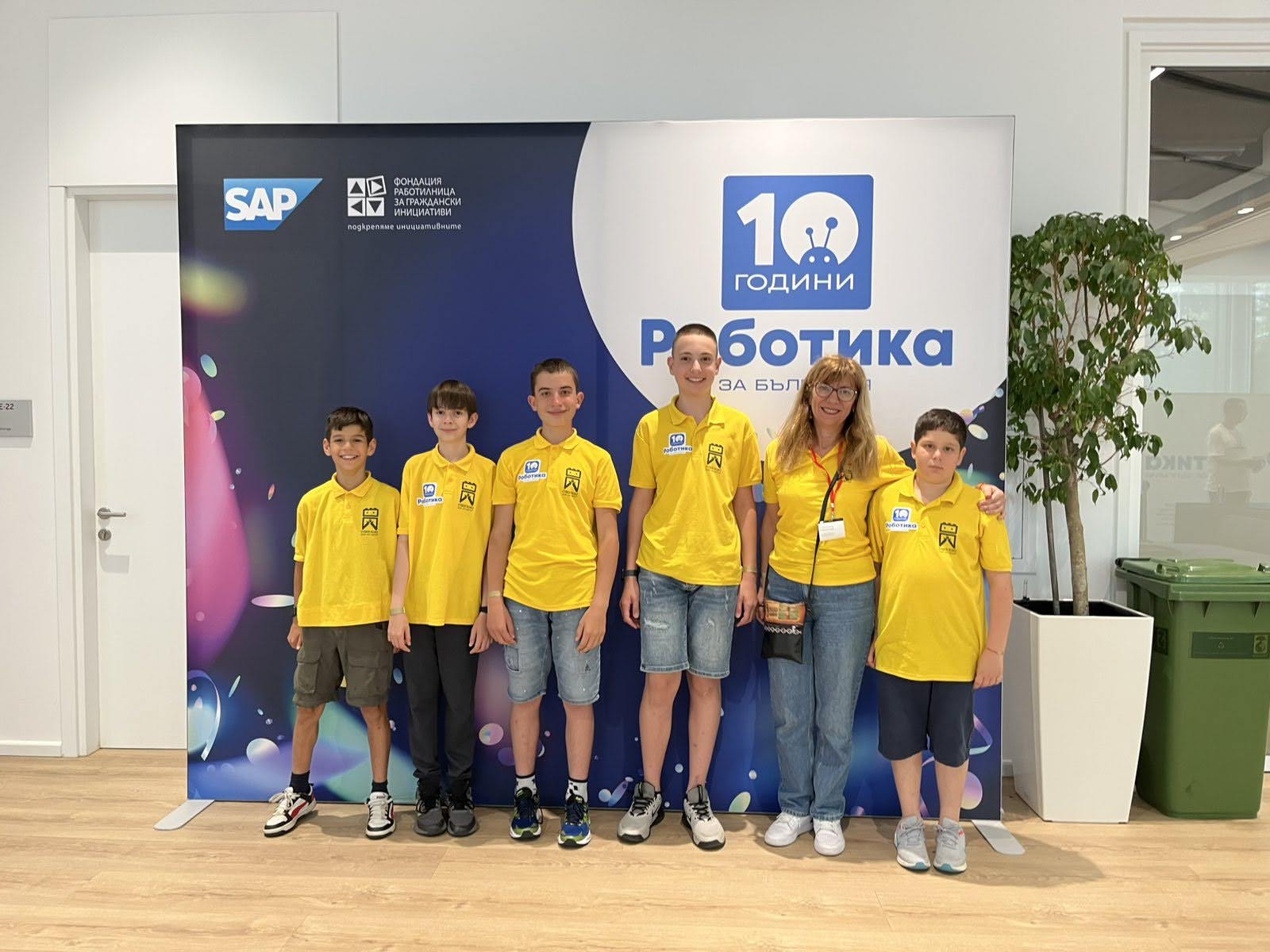 SAP labs Bulgaria бяха не само гостоприемни домакини на състезанието. Точно преди 10 години ентусиасти от фирмата, участвали в световната First Lego League, създават по нейните правила програмата „Роботика за България”. Заедно с Фондация "Работилница за граждански инициативи" организират, подкрепят и финансират все повече ученици и учители и тази година програмата достигна рекордната бройка от 84 отбора от цялата страна. До финала от 28 отбора, класирани на 4 регионални състезания, бе и нашият казанлъшки, единствен от Стара Загора област, отбор CyberRobo. И както каза в приветствието си кметът на София, г-н Васил Терзиев, почетен гост на фестивала: „Тук децата са творци – те създават проекти. А от нас зависи идеите им да намерят реализация. Роботиката не е просто технология – тя е творчество, бъдеще и възможност. Тя ни учи да мислим и мечтаем. С нея стигаме до трудно достъпни места, виждаме невидимото, изследваме морета, океани, космоса. Тя е път за любознателните.“