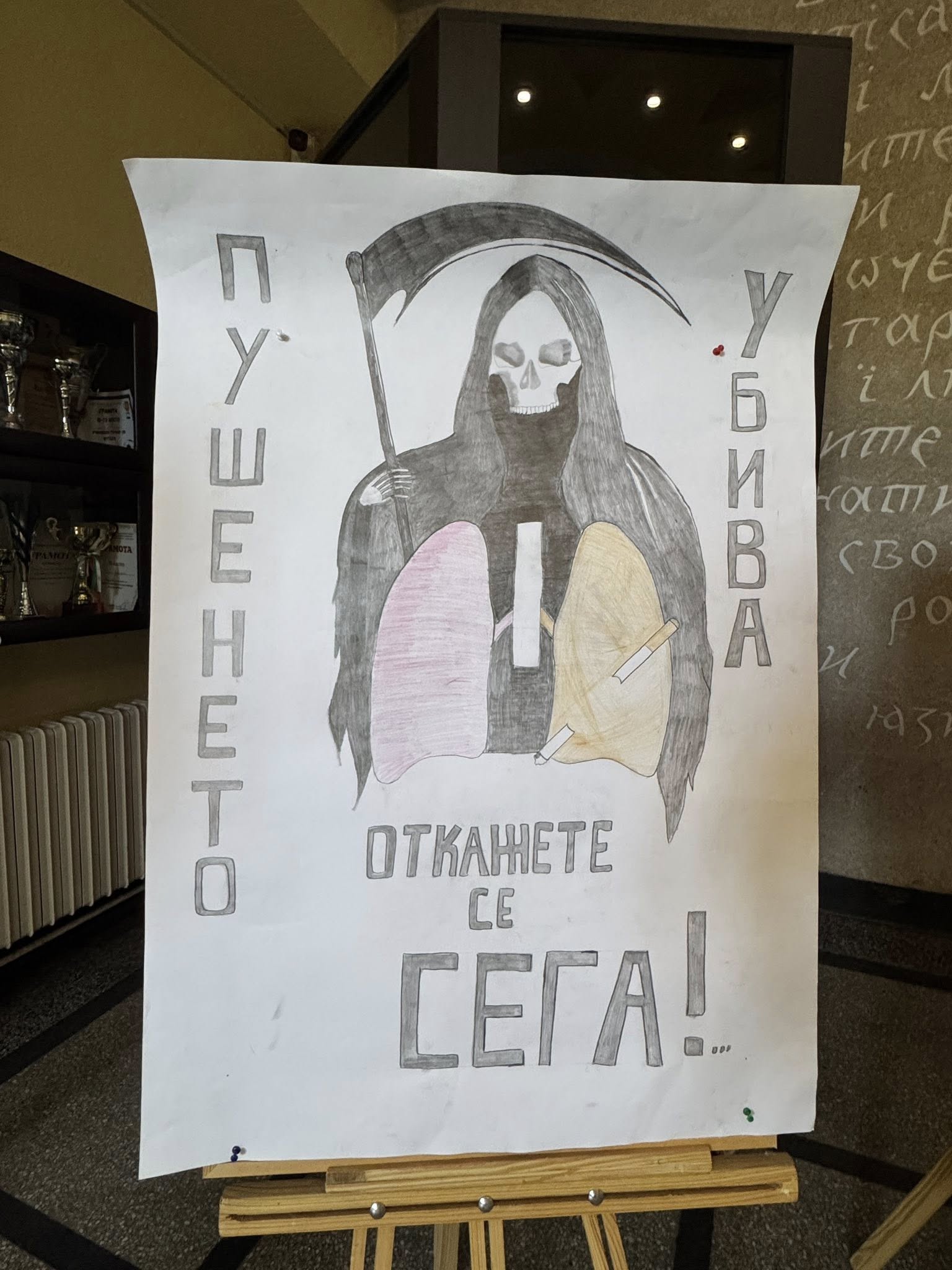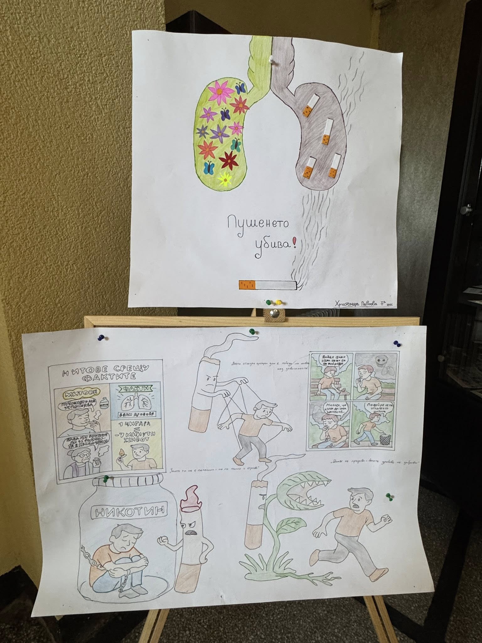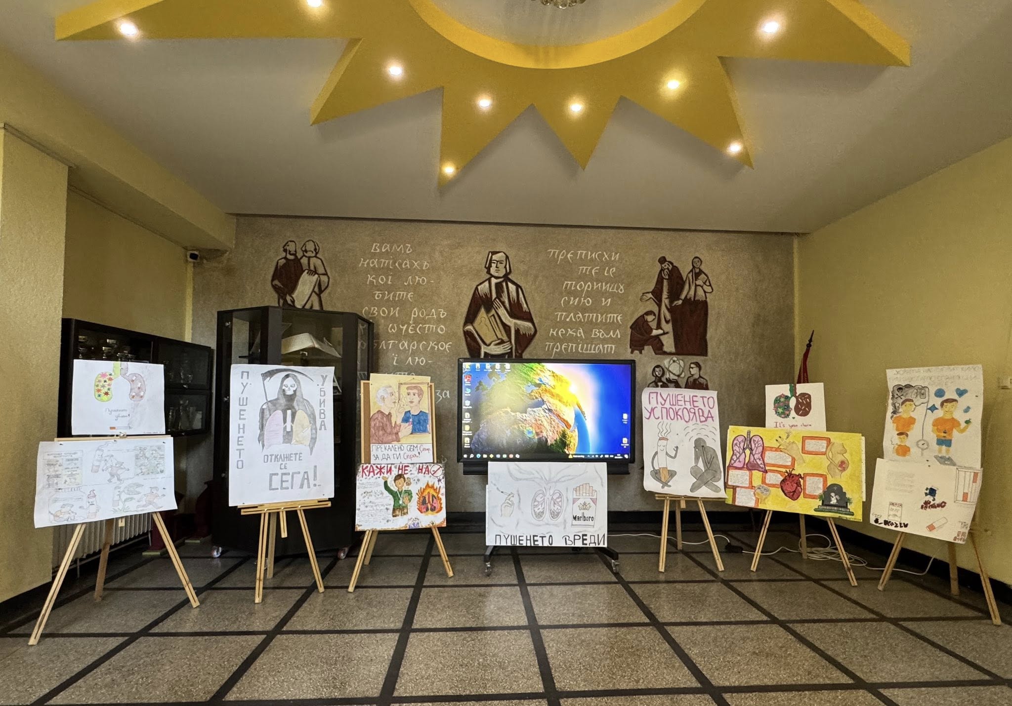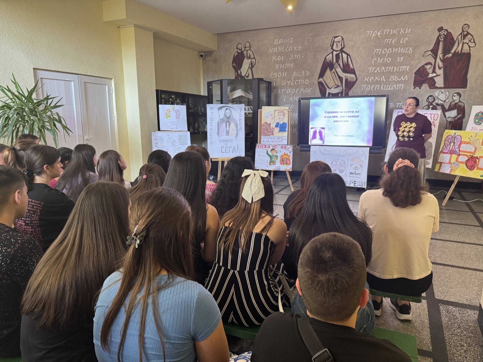 Във фоайето на училището се проведе обучение по програмата „Училище „Превенция“ на теми „Вреда от тютюнопушенето“ и „Физическа активност“. Седмокласниците взеха участие и в симулативни игри, насочени към превенция.