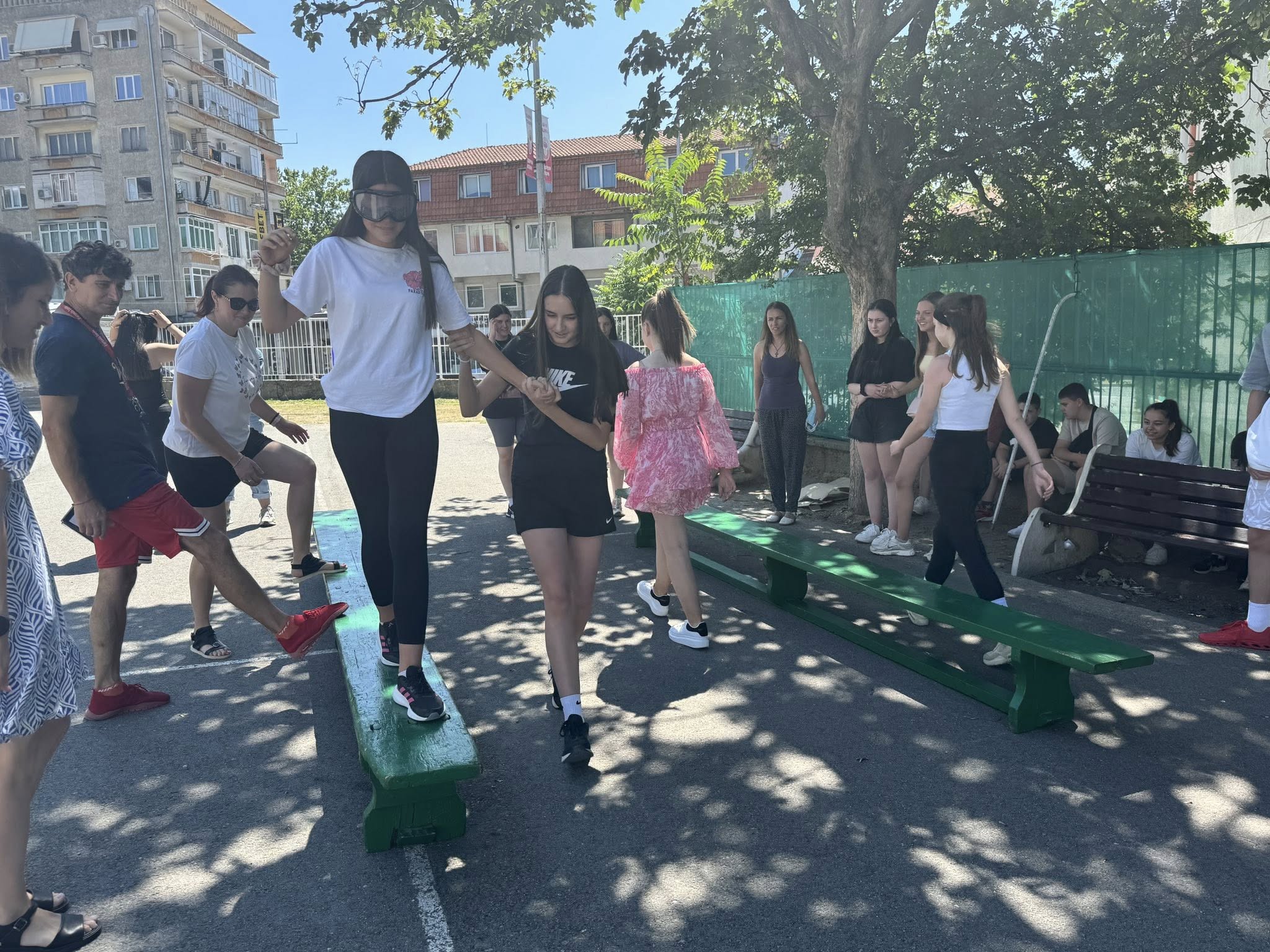 На площадката по безопасност на движението в двора на училището, учениците с помощта на специални очила, симулиращи употреба на алкохол и наркотици, влязоха в ролята на участници в движението. Задачата визуализира симптомите след употреба на психоактивни вещества и огромните рискове и заплахи, които крият за всички участници в движението по пътищата. Всеки ученик сподели усещането за истинските симптоми от употребата на ПАВ, предизвикани от очилата в експеримента.