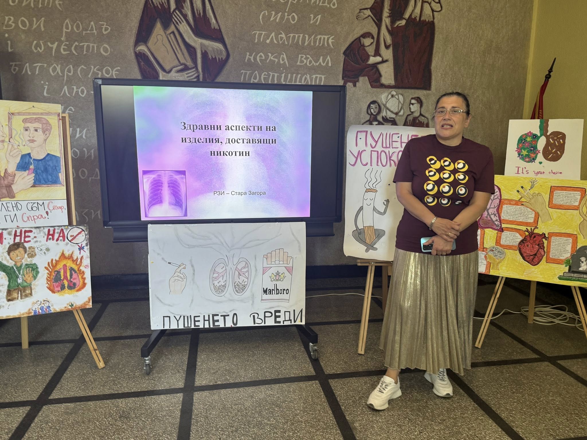 Специален гост на учениците бе г-жа Галина Димитрова, главен експерт в Дирекция „Обществено здраве“ към Регионалната здравна инспекция – Стара Загора.