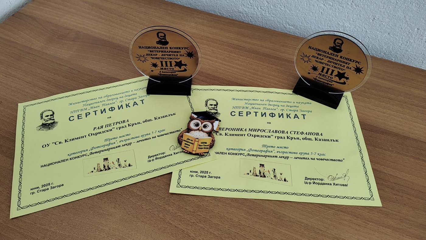 Ученици от ОУ „Св. Климент Охридски“ – гр. Крън с желание се включиха в организирания от НПГВМ Национален ученически конкурс „Ветеринарният лекар – лечител на човечеството“, включен в календара на МОН. Тази година в конкурса участват 597 ученици от цялата страна.