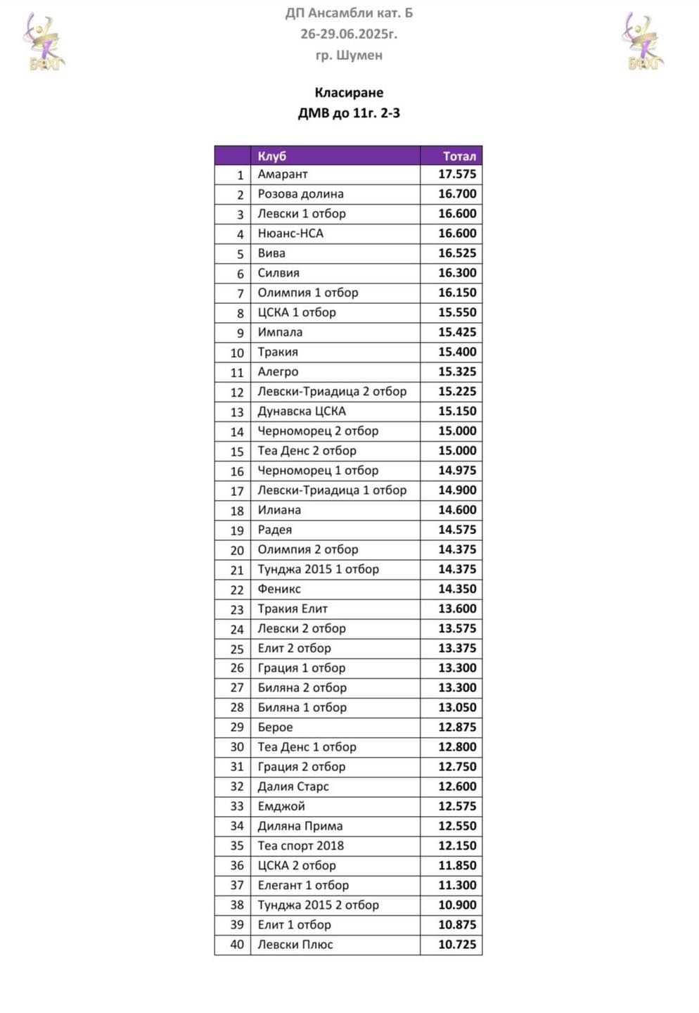 Ансамбъл ДМВ до 11 години в състав: Александра Юрукова, Николета Колева и Василена Ангелова, завоюва второ място от общо 44 ансамбъла на Държавното първенство за ансамбли, Б категория.