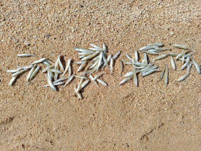 Рибар сигнализира във фейсбук групата на ЦРОО Копринка за голямо количество умрели малки бели рибки. Мъртвите риби са забелязани на района на плажа.