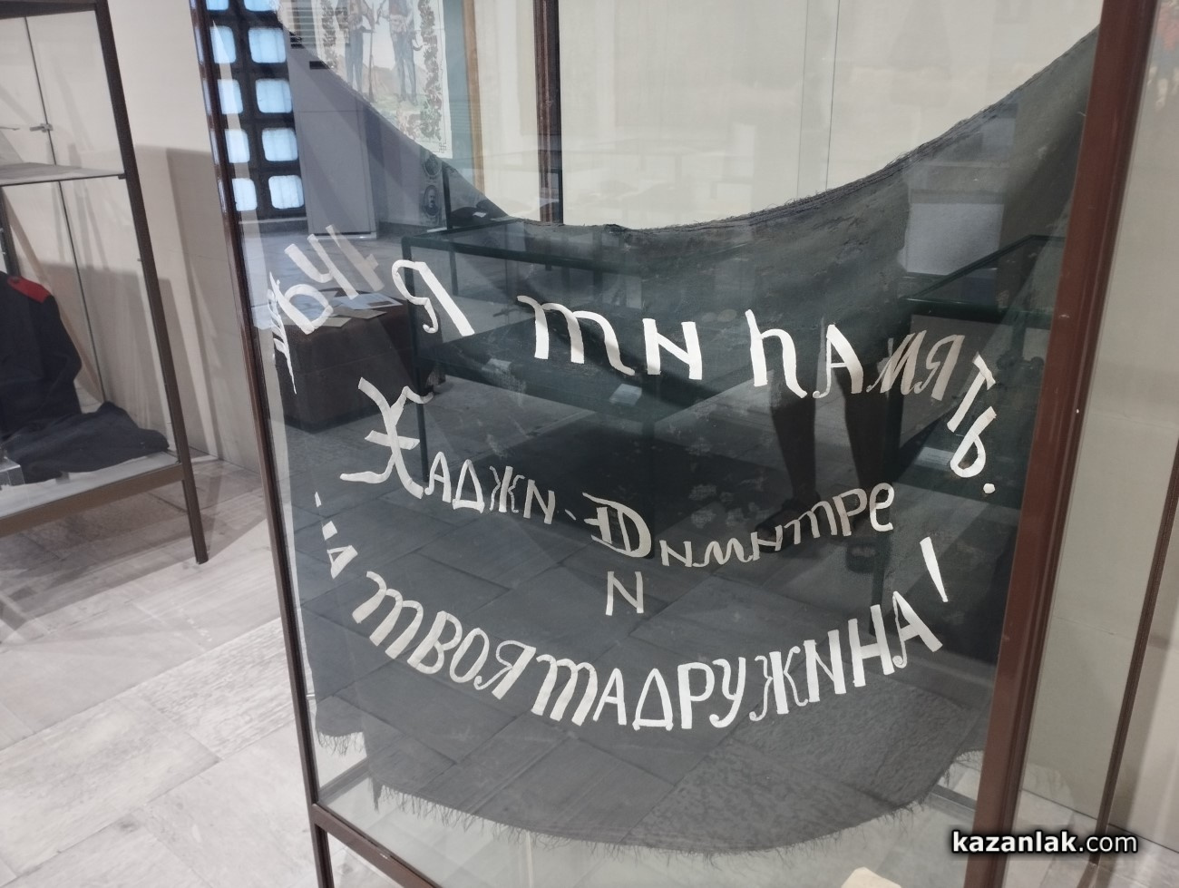 Д-р Маринов показа безценни реликви в казанлъшкия музей – сред първите експонати, съхранявани там повече от век. Сред тях е знамето, с което през 1885 г. казанлъчани изкачват историческия връх Бузлуджа, за да отдадат почит на героите.