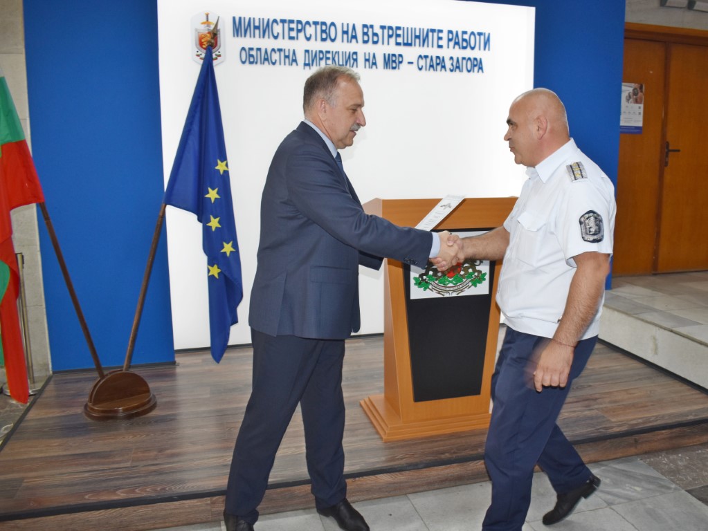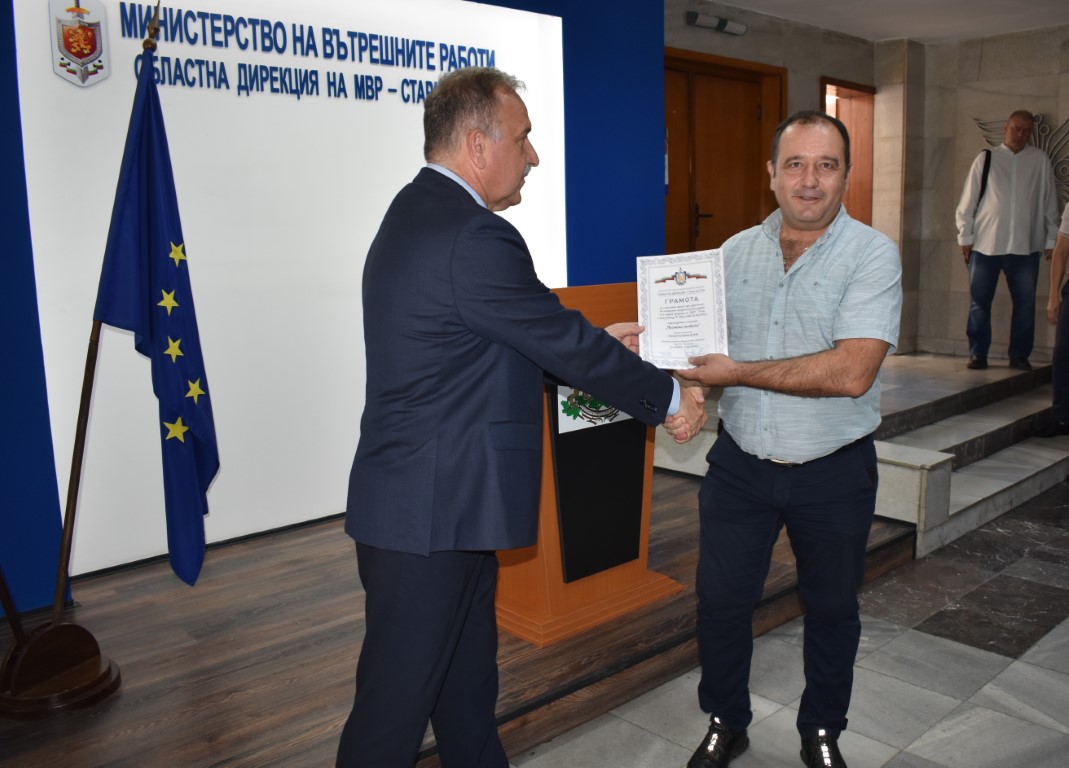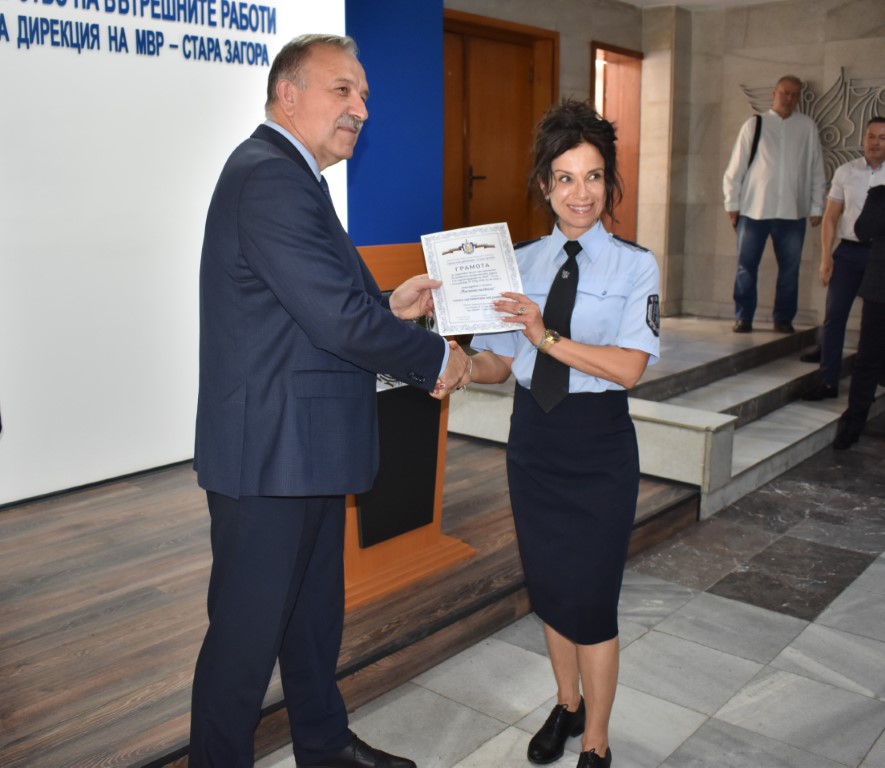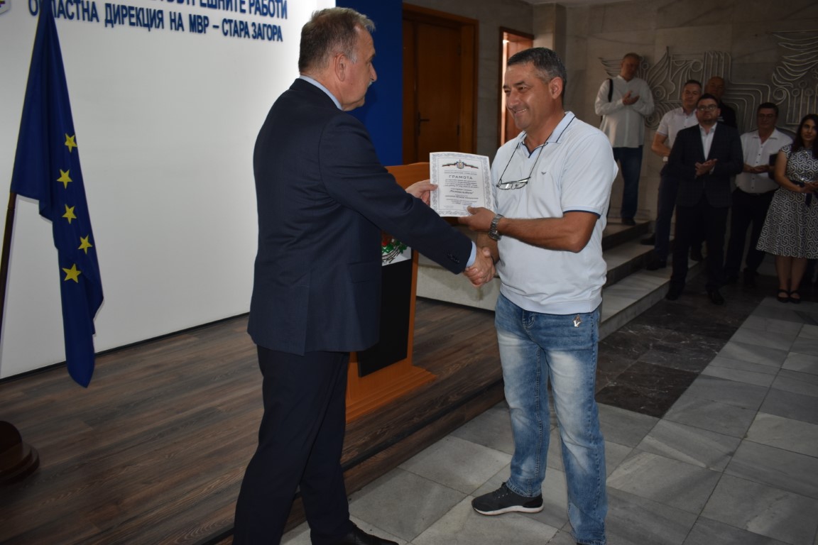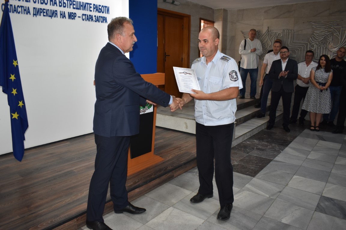 В празничния ден, с "Писмена похвала" са наградени още 14 служители за постигнати високи професионални резултати от началника на отдел „Охранителна полиция“ при ОДМВР-Стара Загора комисар Антон Иванов .
