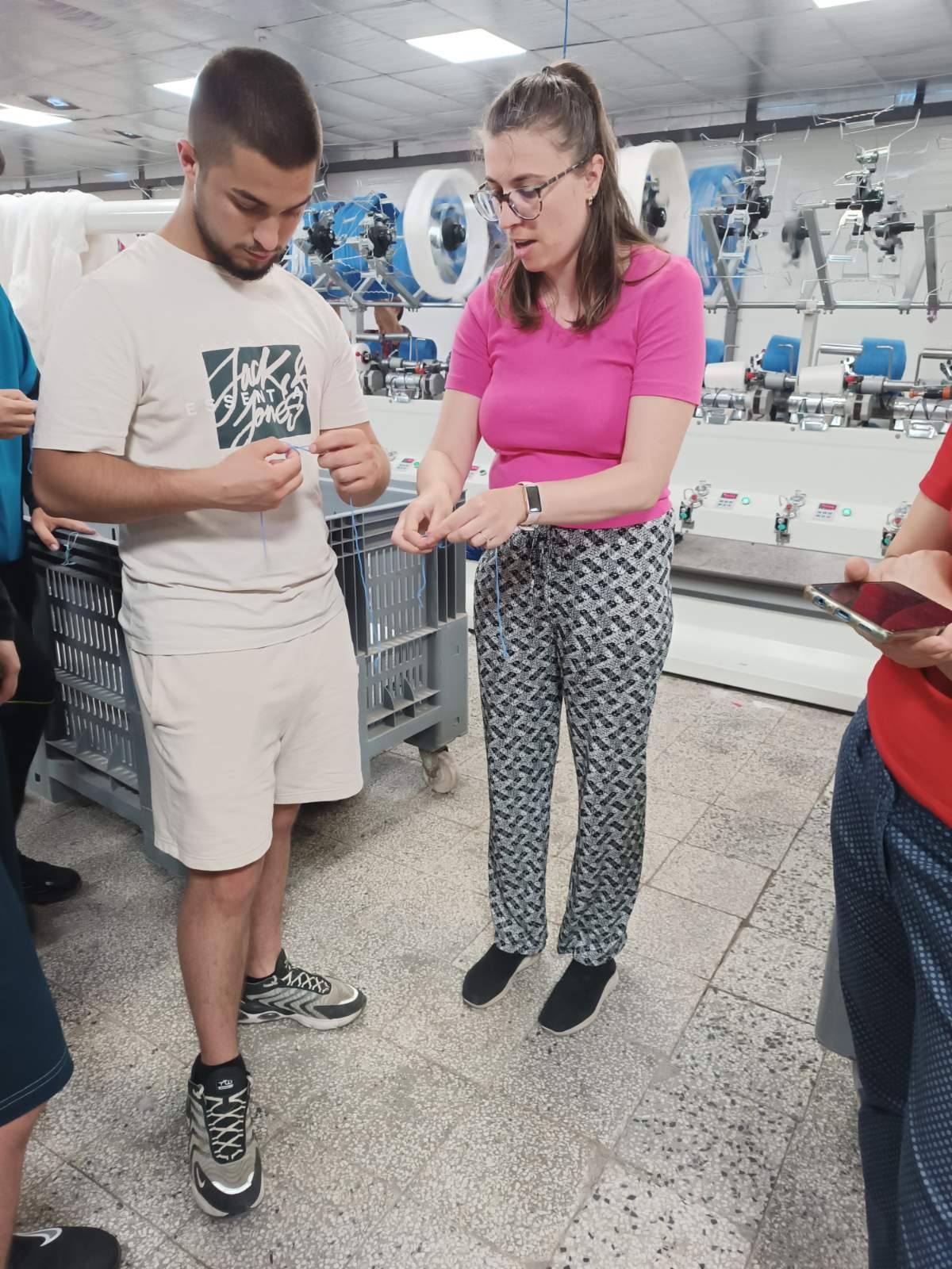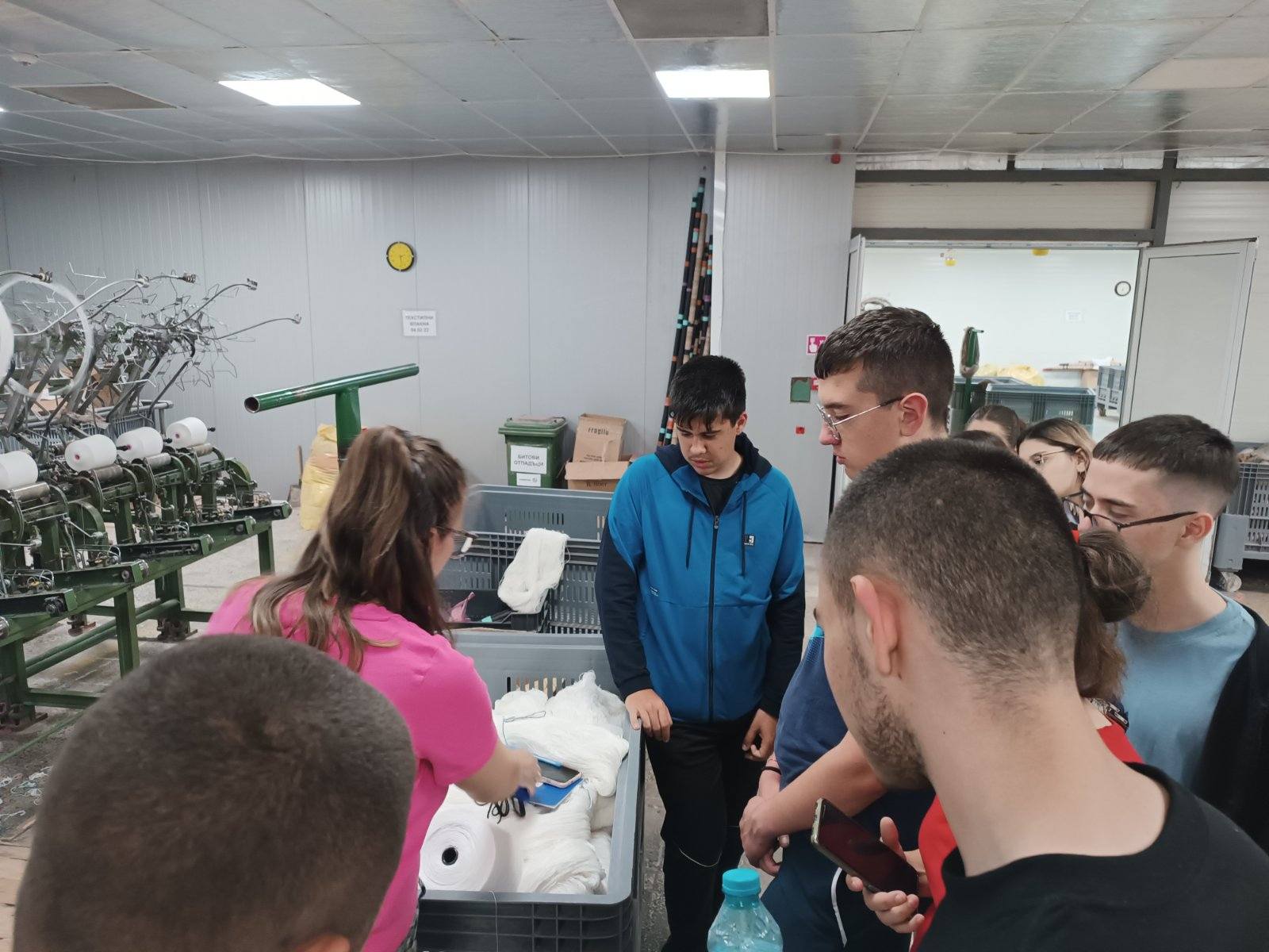 Те наблюдаваха работата в навивачен цех и видяха крайните продукти – тъкани и прежди от естествен и синтетичен произход.