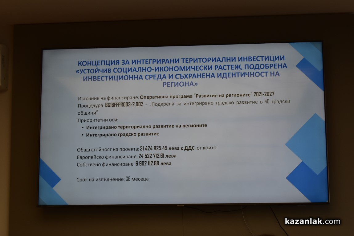 Кметът подчерта, че концепцията включва важни проекти и обърна внимание на някои от тях. Тя определи изграждането на подземната и надземната инфраструктура в Индустриална зона – Казанлък като едно от най-съществените начинания, което ще получи финансиране, и го определи като особено удовлетворяващо.