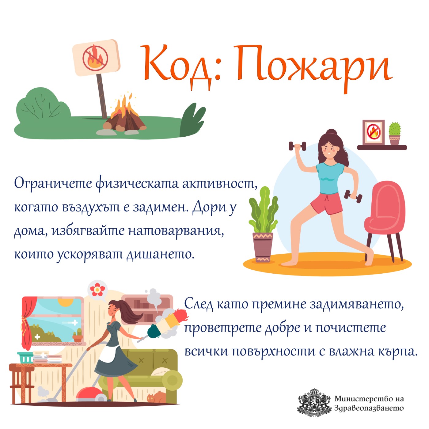 Министерството на здравеопазването призовава за повишено внимание и грижа за здравето при пожари и в условия на замърсен въздух.