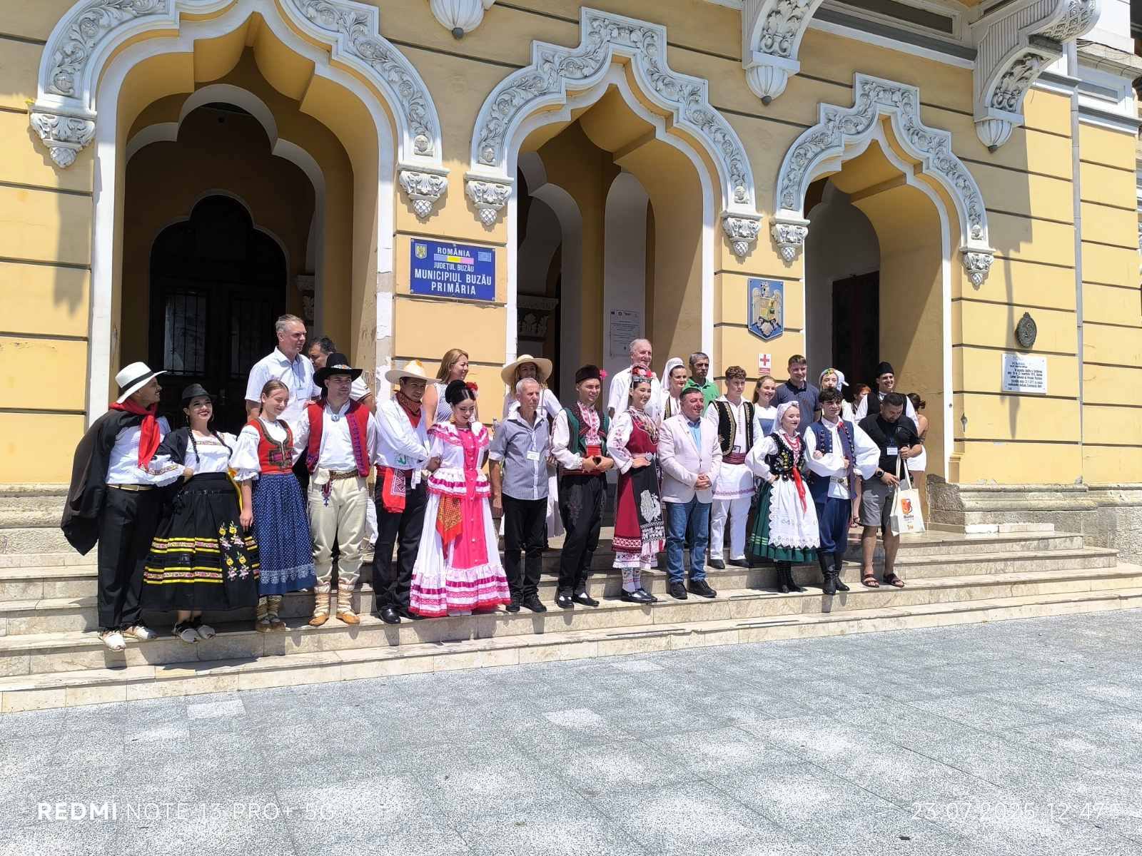 С емоционален и зареждащ първи ден започна участието на Ансамбъла за народни песни и танци „Искра“ в десетото юбилейно издание на Международния фолклорен фестивал „Plaiurile Mioriței“ в град Бузъу, Румъния. Казанлъшкият ансамбъл и останалите участници бе официално посрещнат от кмета и общинското ръководството на града, които приветстваха с топлота и гостоприемство.