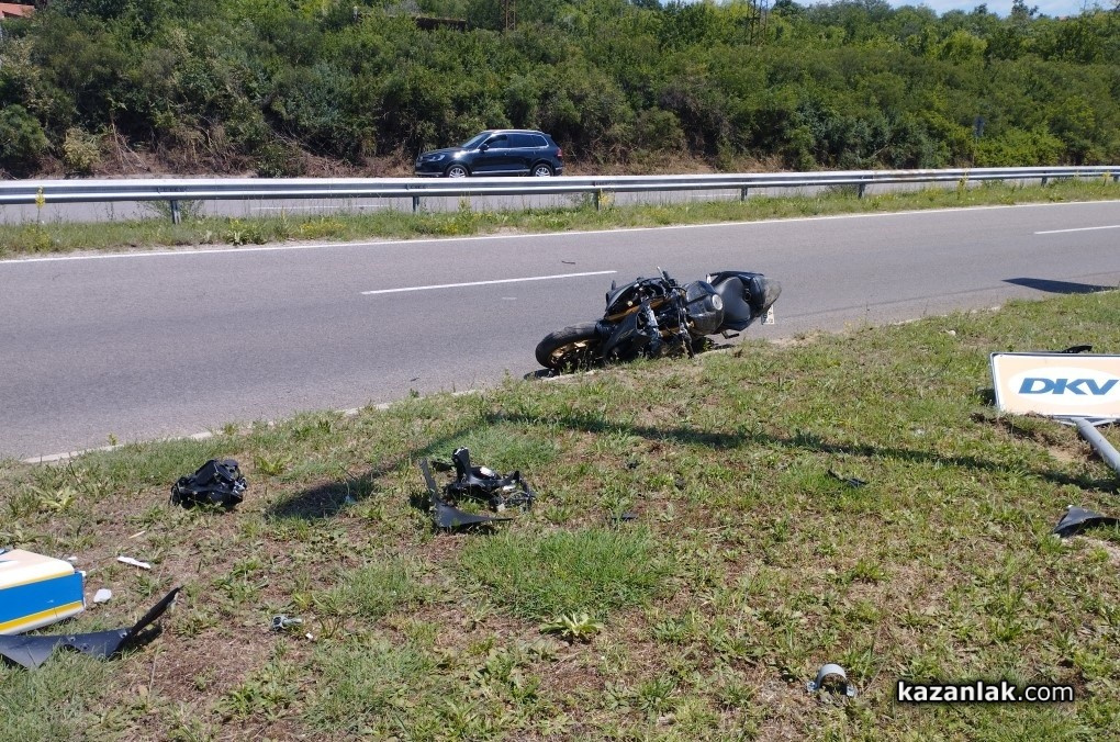 По първоначална информация е самокатастрофирал мотоциклет "Ямаха", управляван от 29-годишен мъж, като превозното средство се блъснало в метална еластична ограда.