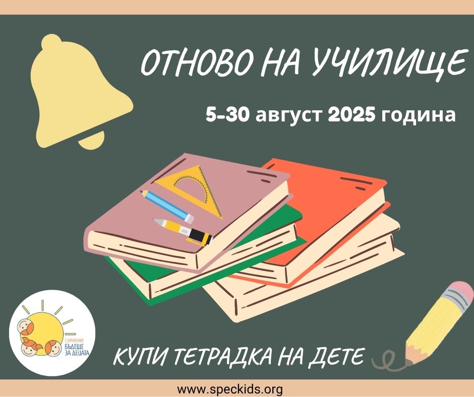 За трета поредна година, Сдружение "Бъдеще за децата" стартира благотворителната инициатива „Отново на училище – Купи тетрадка за дете“ по повод предстоящата 2025/2026 учебна година. С нея, добродетелите ще успеят да напълнят раниците на 100 деца с необходимите учебни материали.
