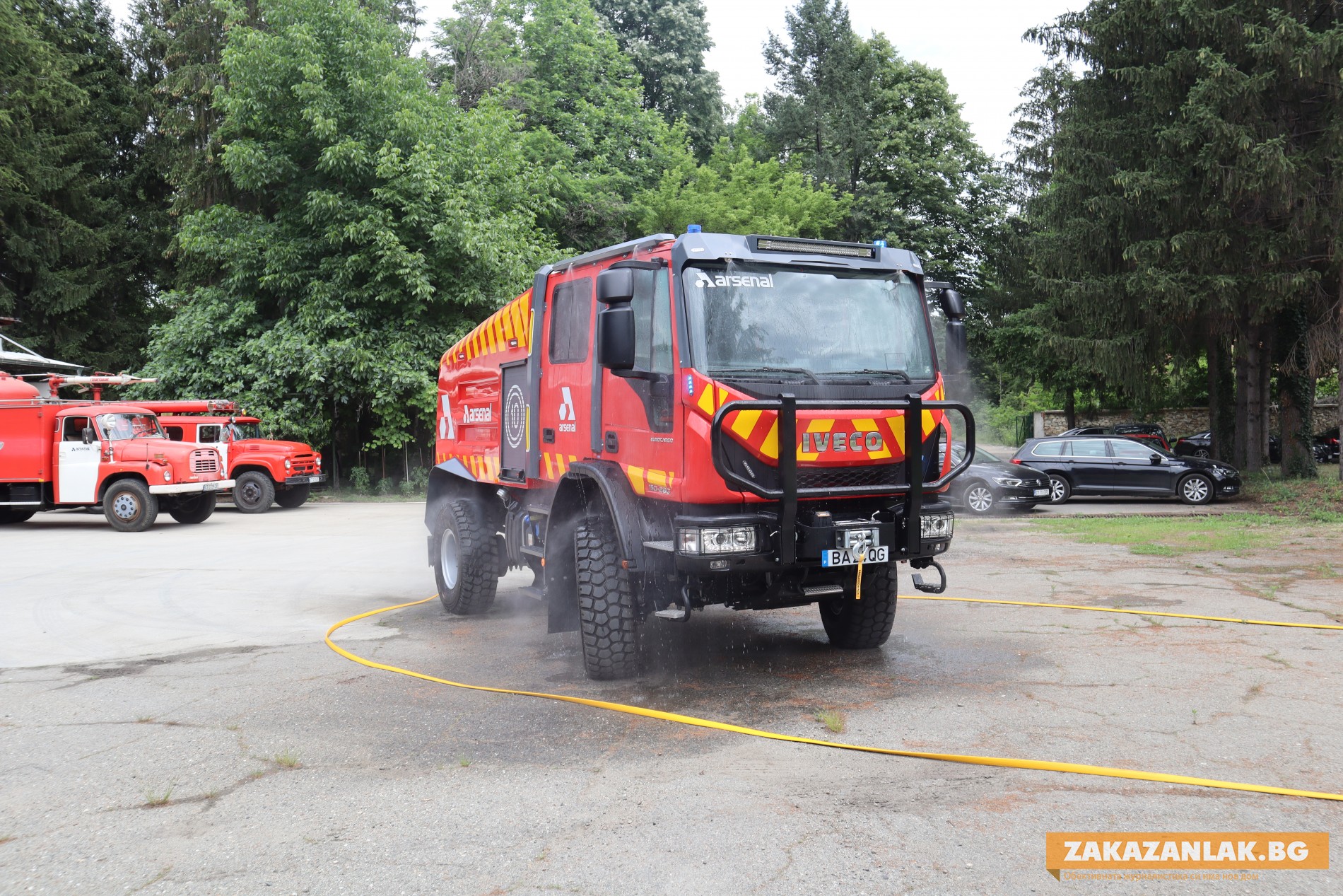 Специализираният противопожарен автомобил е точно копие на този от преди две години. Марката е „Ивеко“, има висока проходимост, подходяща за работа на всякакви терени. Останалите му технически характеристики са – обем на резервоара от 3000 литра, с допълнителен резервоар и дюзи за защита при екстремни ситуации (когато автомобилът попадне в непосредствена близост до огнище на пожар), хидропомпа с налягане от 30 атмосфери и динамична струя, която позволява широк обхват работа при извършване на гасителни действия от арсеналските пожарникари.