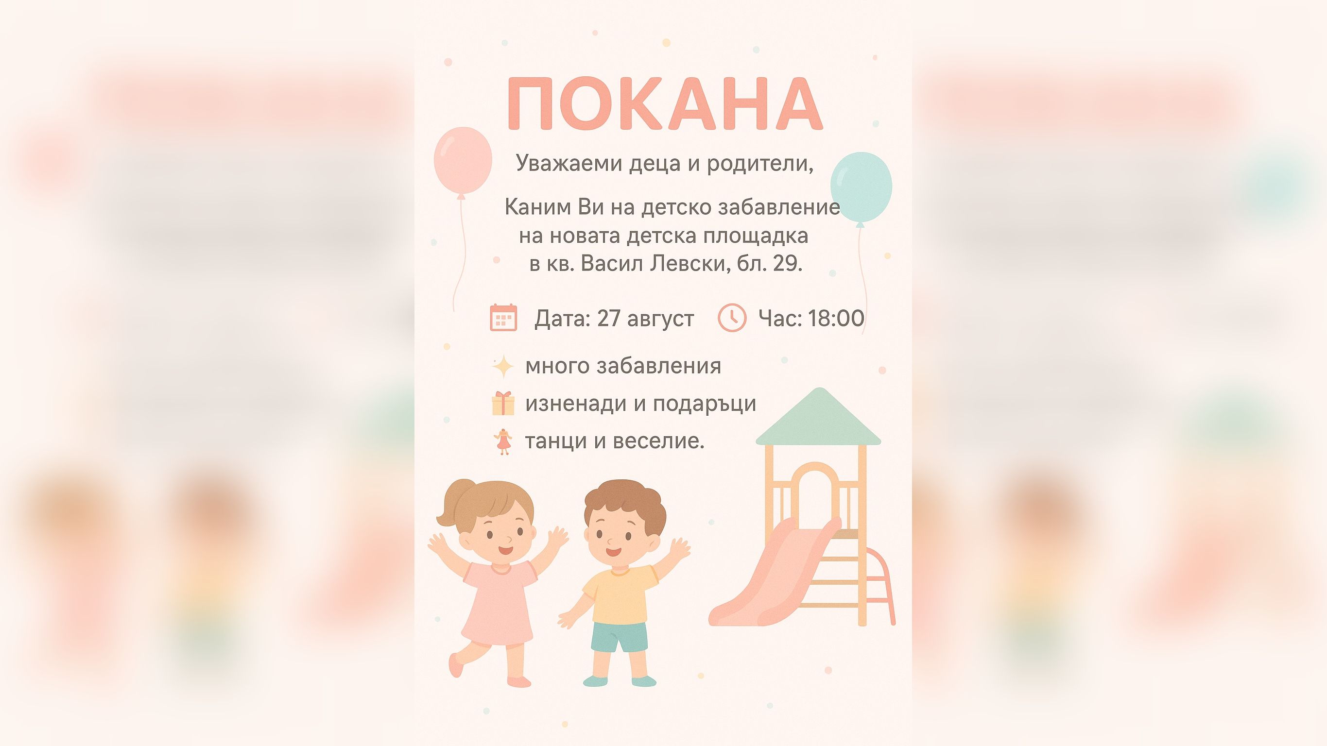 Събитието е насрочено за 27 август (сряда) от 18:00 часа и има за цел да отбележи откриването на новото съоръжение с програма, насочена към най-малките жители на града.