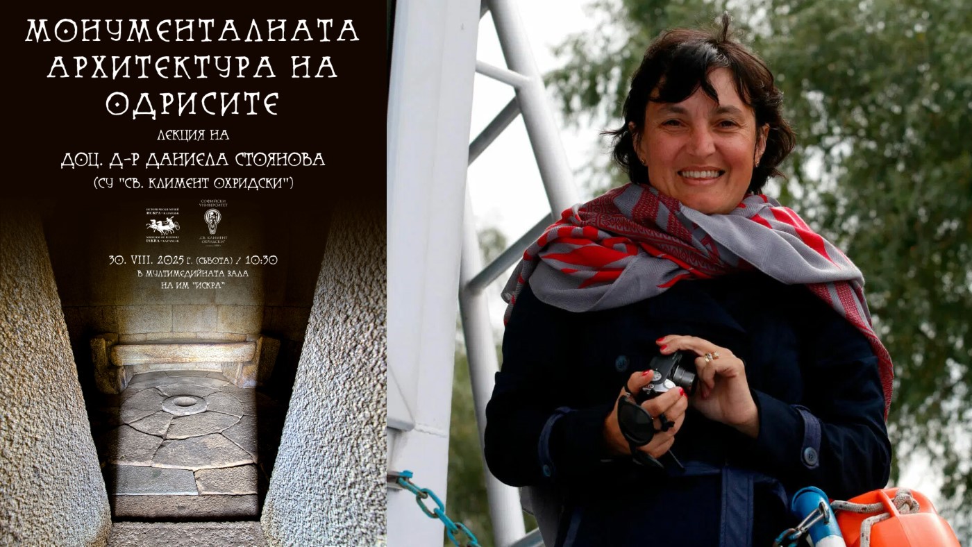 Доц. д-р Даниела Стоянова от Софийския университет „Св. Климент Охридски“ ще изнесе лекция на 30 август (събота) от 10:30 ч. в Мултимедийната зала на Историческия музей „Искра“ в Казанлък. Тема на лекцията ще бъде "Монументалната архитектура на одрисите".