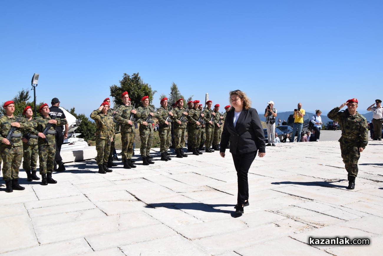 Днес отдаваме почит и уважение на онези, които с героичната отбрана на Шипченския проход обърнаха хода на историята и на Руско-турската освободителна война, отбеляза в приветствието си председателят на парламента. Драматичните усилия на българските опълченци и на войниците на руския император Александър II да удържат многократни турски атаки на прохода Шипка в битките за свободата на България остават завинаги в историята, допълни Наталия Киселова. Тя цитира Вазов, който възкликва: „На Шипка всичко беше героично – и хора, и оръдия, и камъни!“. По думите й на този връх, където небето се слива със земята, се ражда една от най-славните страници на българската история.