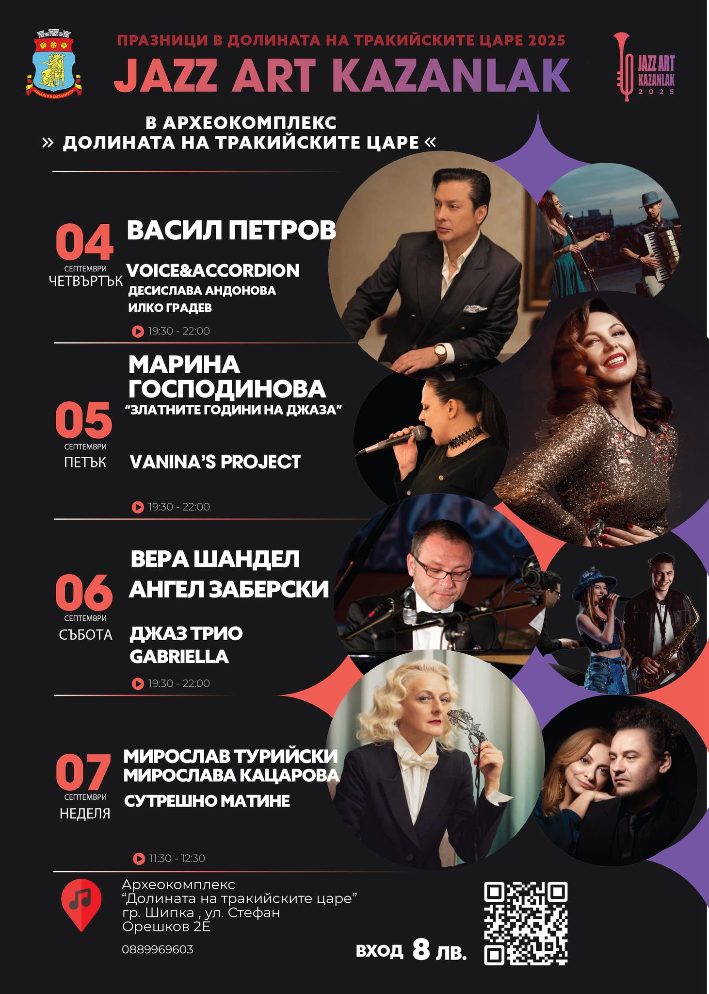 Община Казанлък за поредна година организира едно от най-дългоочакваните събития, част от Празници в Долината на тракийските царе, а именно "ДжазАрт Казанлък", чието издание ще се състои в уютното пространство на Археокомплекса край град Шипка.