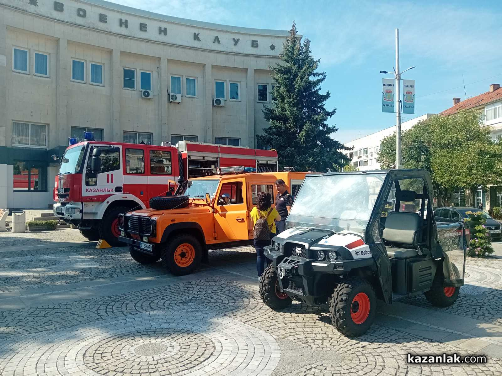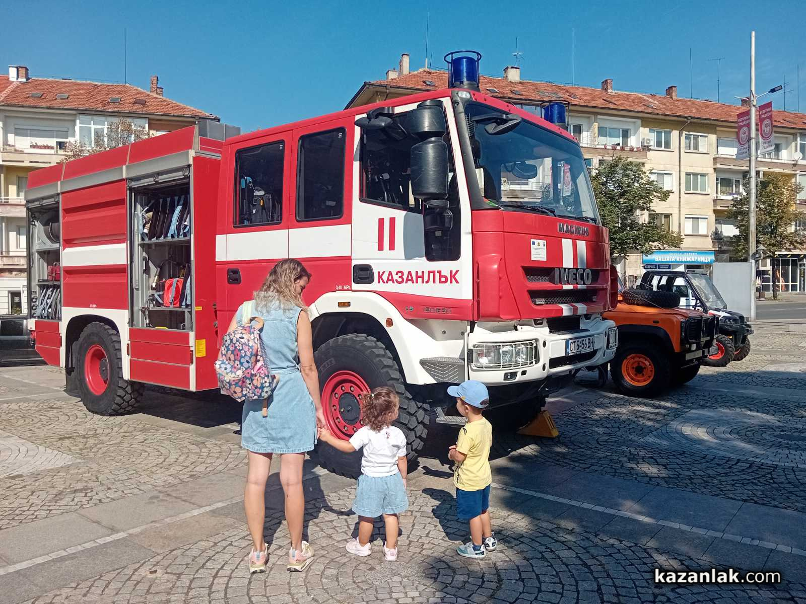 Жителите и гостите на града имат възможността до 17:00 ч. да се запознаят отблизо с пожарен автомобил тип „градски“, техника за гасене на пожари в труднодостъпни и пресечени местности, както и с бобкат, използван за обследване и ликвидиране на пожари. Така казанлъчани не само видяха, но и се докоснаха до оборудването, с което огнеборците ежедневно спасяват човешки животи и имущество.