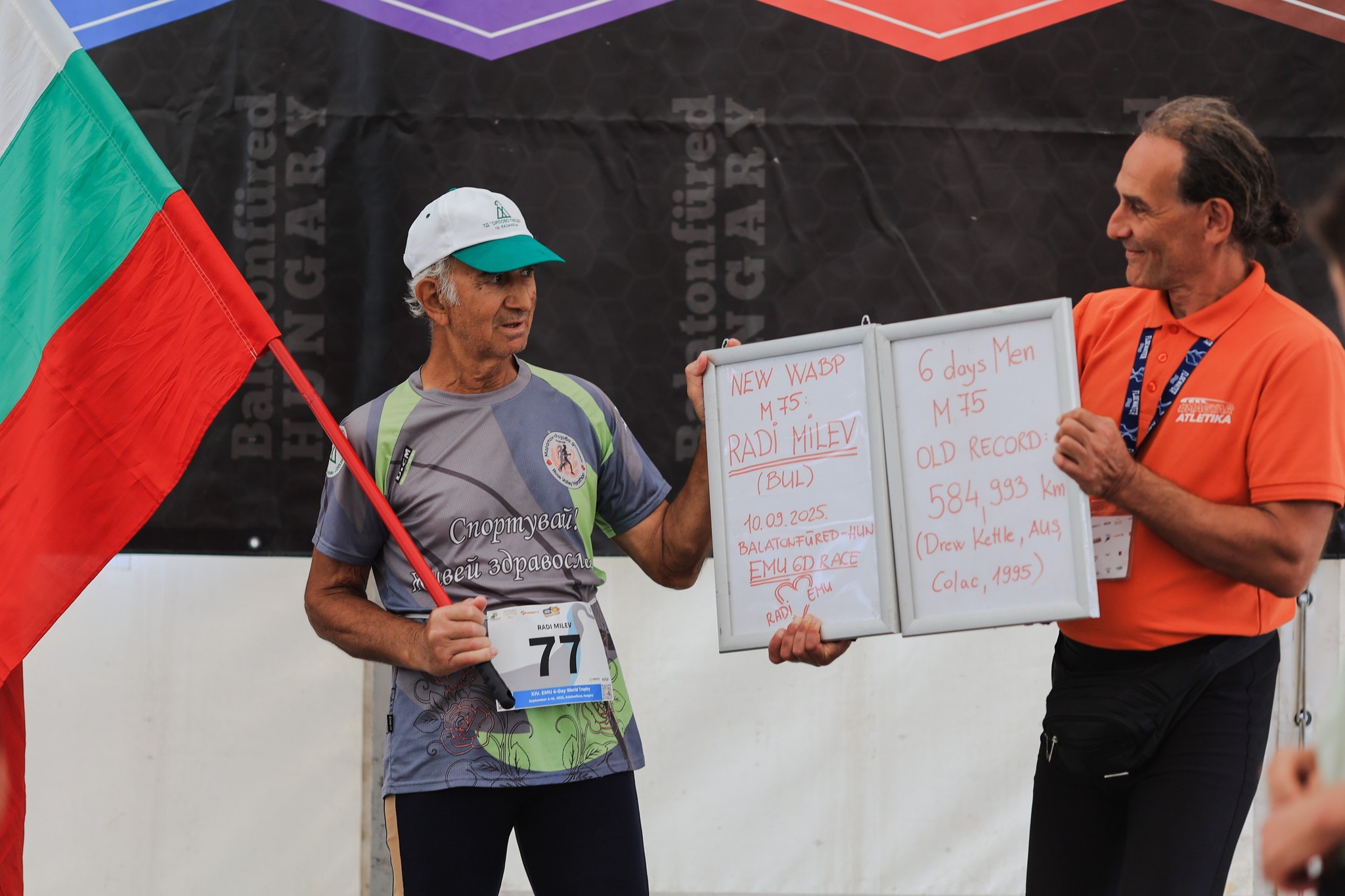Българският ултрамаратонец Ради Милев от Казанлък подобри световния рекорд в 6-дневното бягане във възрастовата група 75–79 години по време на състезанието за Световната купа край езерото Балатон в Унгария.