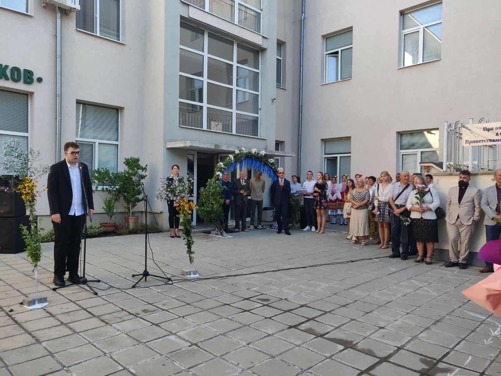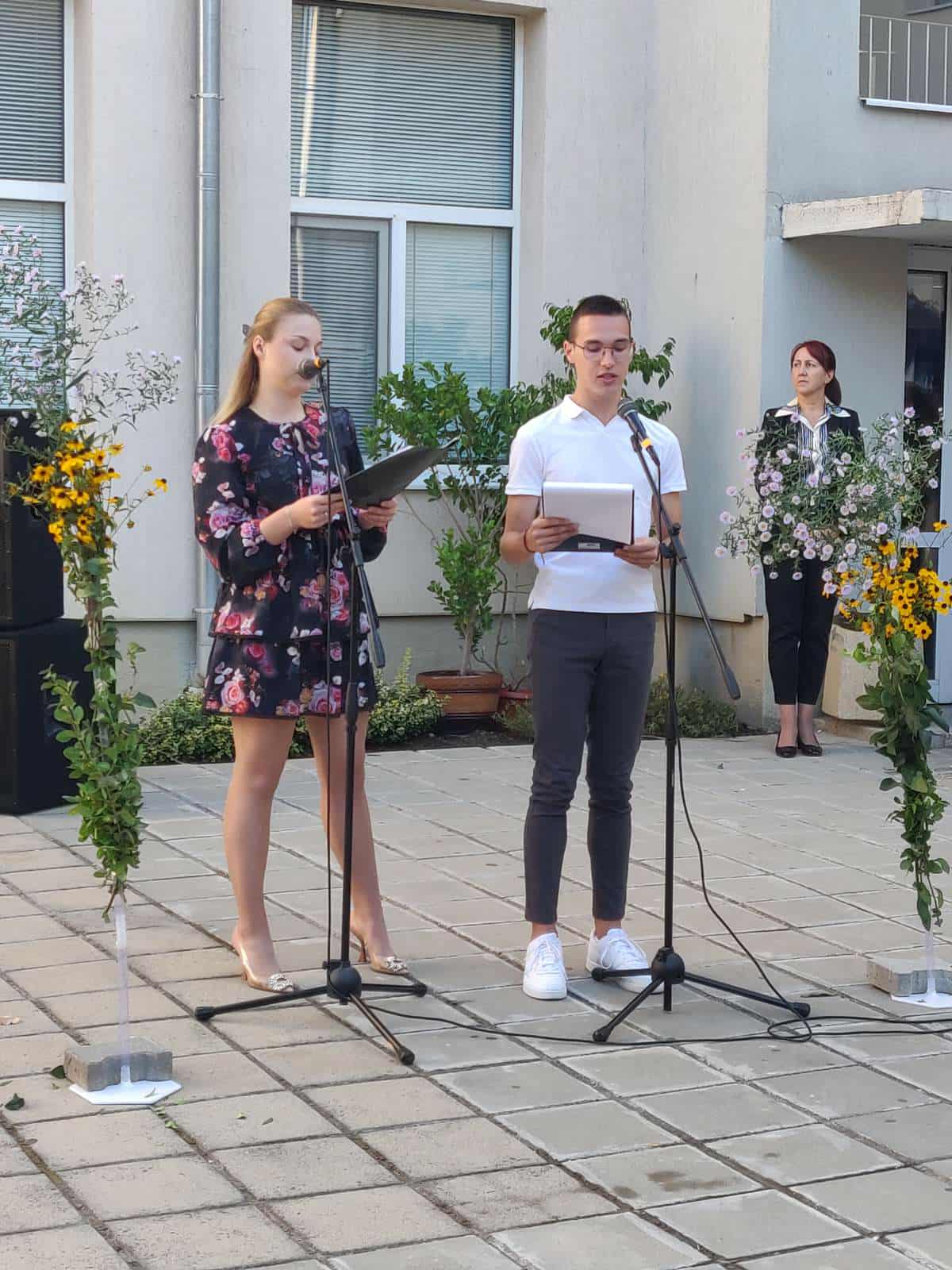 Церемонията започна с издигане на националния флаг от изключителния възпитаник на гимназията – Валентин Кирилов. През лятото на 2025 г. той спечели златен медал на престижната международна олимпиада Asia International Mathematical Olympiad (AIMO) в Япония, където се състезава в най-силната възрастова група сред хиляди участници от целия свят. Успехът му е не само лична победа, но и повод за гордост за цялата училищна общност.