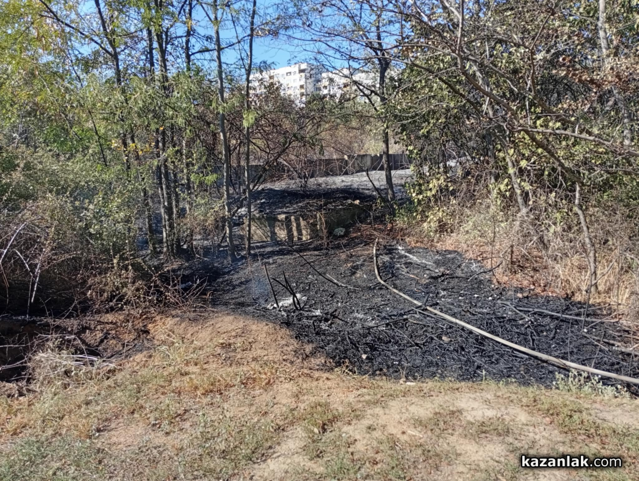 Пожар е възникнал в източната част на Казанлък, около блок №60, където горят сухи треви.