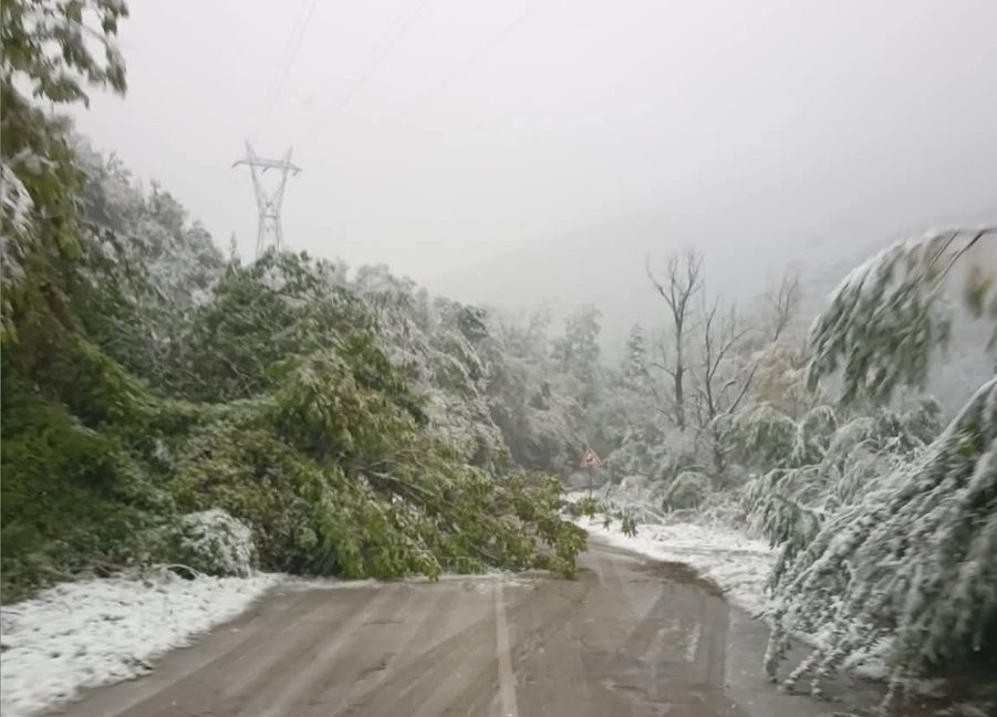 За премахване на паднали дървета е спряно движението на всички автомобили и по третокласния път III-162 Лакатник - Долна Бела Речка в областите Монтана и Софийска.