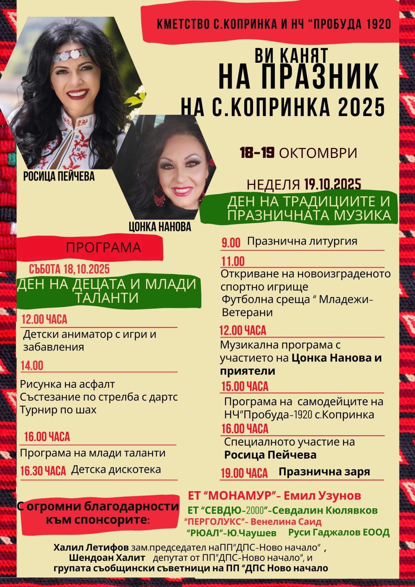 На 18 и 19 октомври 2024 г. /събота и неделя/ ще се състои празника на казанлъшкото село Копринка.