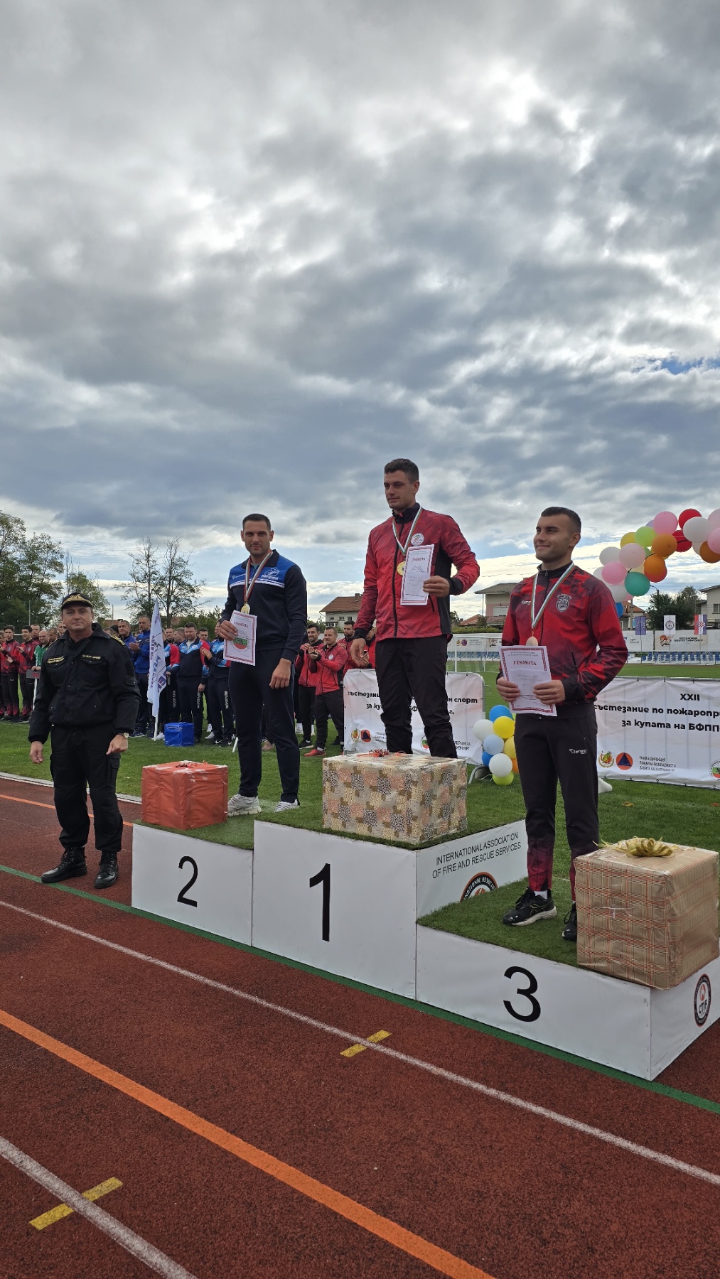 При „Изкачване с щурмова стълба“ най-добро време показа Михаил Костов от Регионална дирекция „Пожарна безопасност и защита на населението“ – Пловдив, който завърши с резултат 14,38 секунди и заслужено спечели първото място. Второто място зае Георги Георгиев от РДПБЗН – Стара Загора с време 14,92 секунди, а третата позиция беше за Добромир Добрев от РДПБЗН – Варна, който финишира с 15,03 секунди.